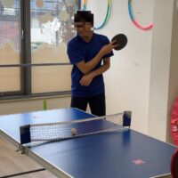 体慣らし恒例、卓球対決。今日は正面に立ってみたり、持ち方をいつもと変えてみたり、研究しながらの試合でした。