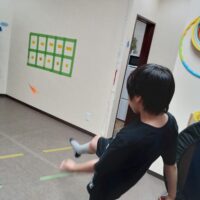 上記2枚は、「スウェイ・バード」という的が動く輪投げにチャレンジしています。的であるヒヨコの動きが面白い!と、言いながら2人とも笑顔で取り組んでくれました。