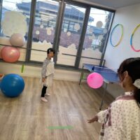 色々な大きさのボールを用いたドッジボールのような運動でした。