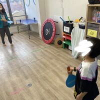 まだまだ、とろんこに慣れていない様子の彼女はボッチャが得意で運動では必ず行っています。