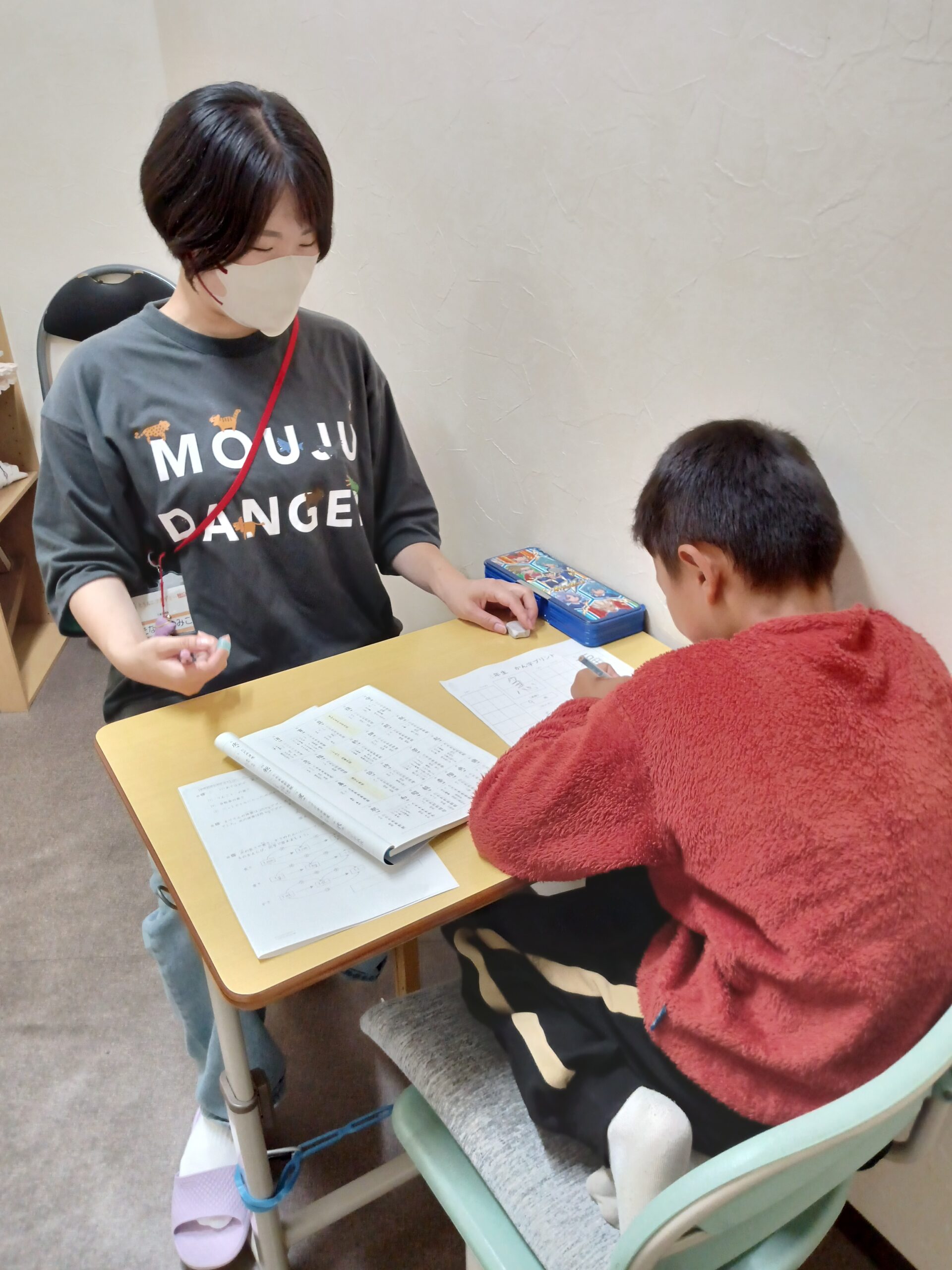 国語の課題が難しいらしく、教科書をみながら一緒に考えました。完了してスッキリした表情をしていました(^-^)