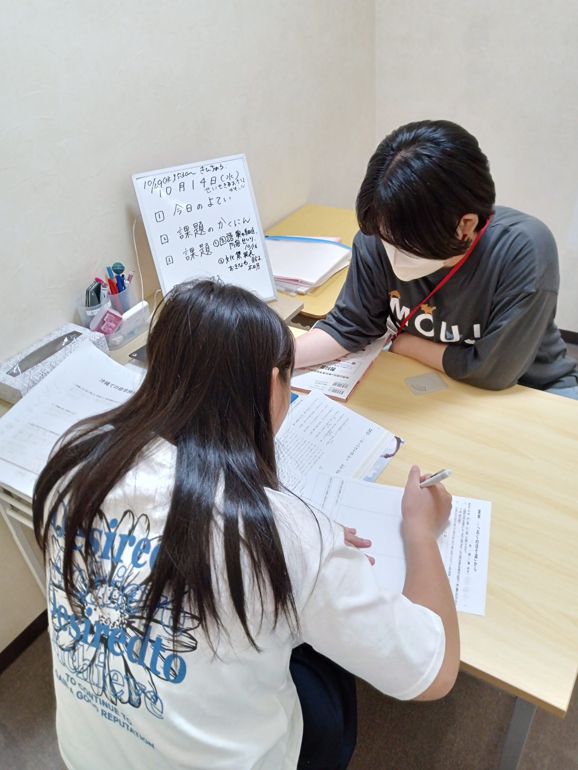 課題のレポートがなかなかに難しいようで、スタッフと一緒に考えました。提出に向けて着実に進めていこう!