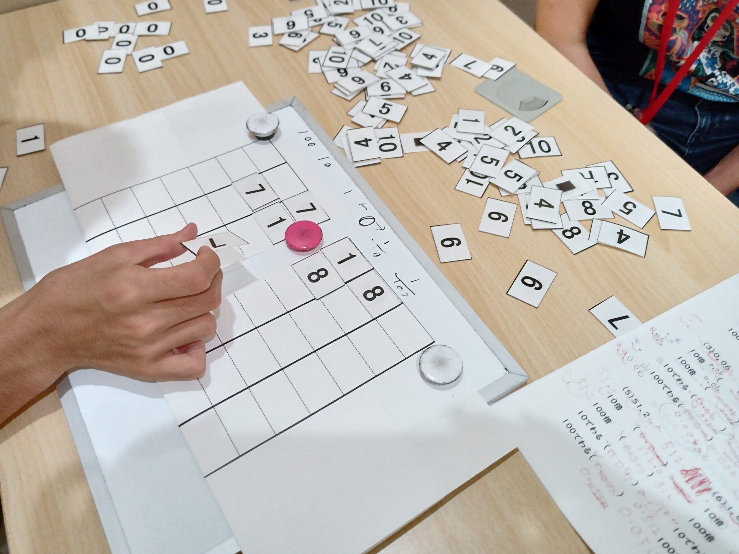 スタッフが言う小数を位を意識しながら数字カードで作っていきます。繰り返し練習して慣れていこう!