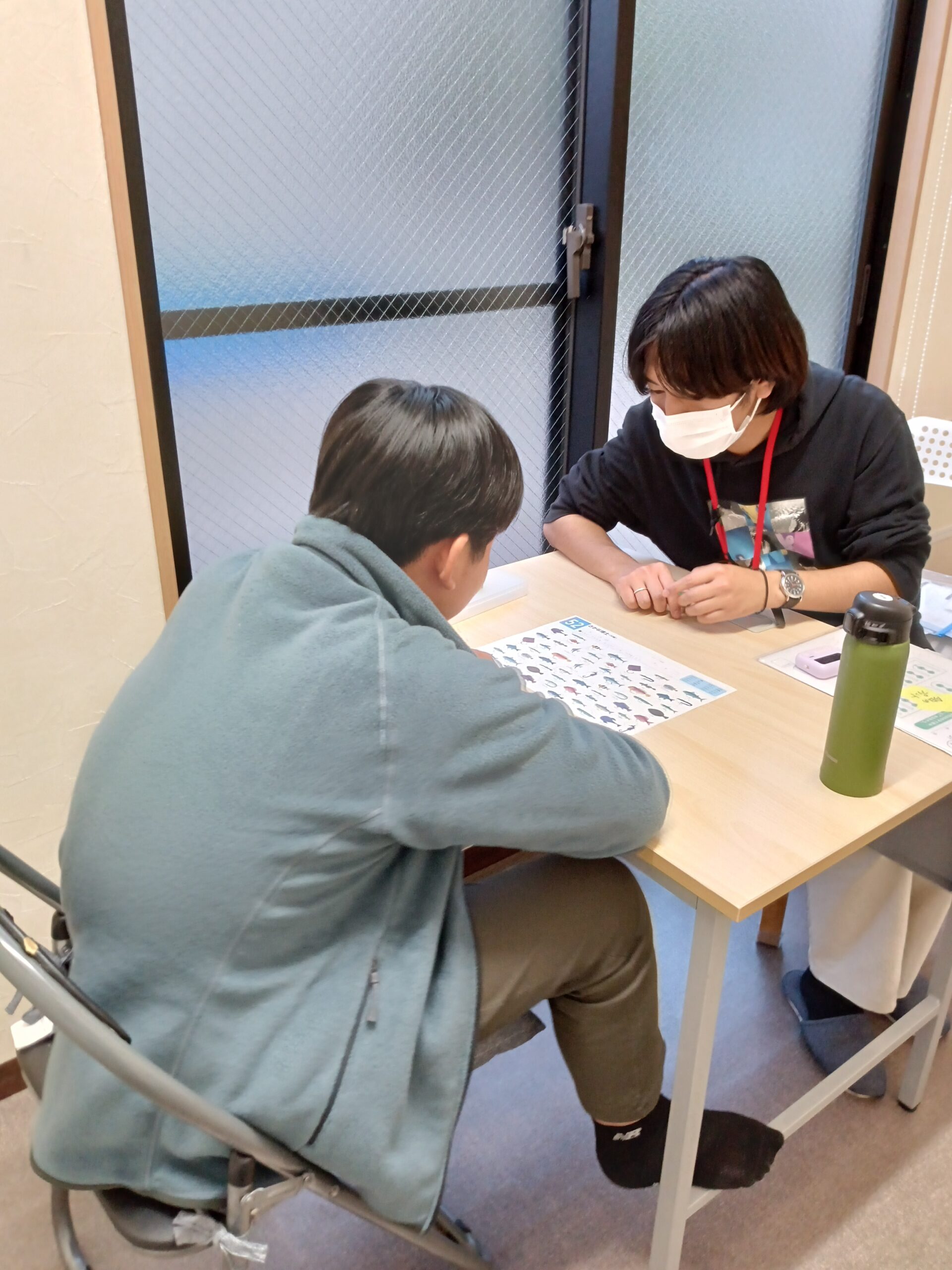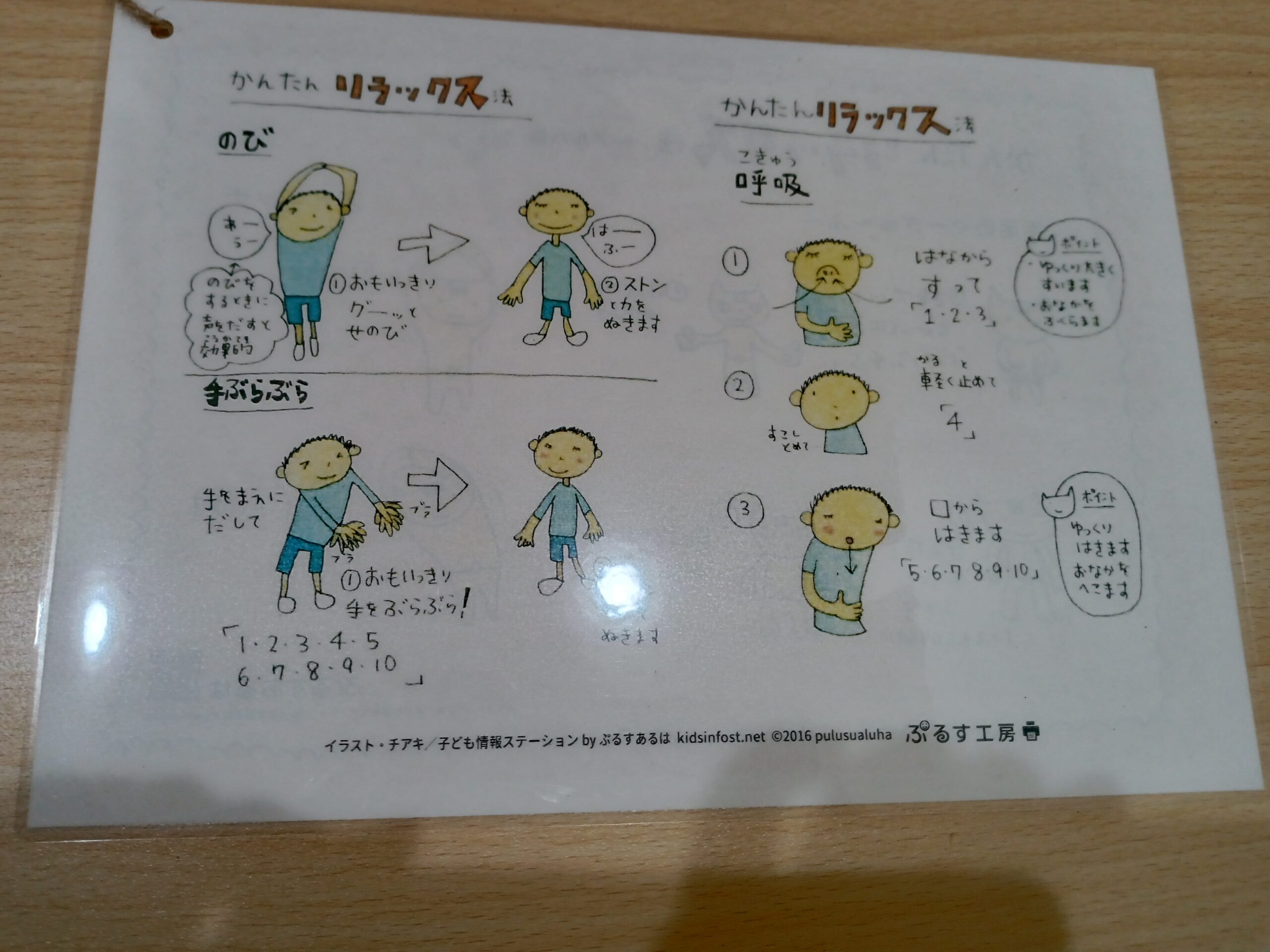 ブリックの活動中、特に学習と学習の合間に息抜きが必要な時には、一旦プレイルームへ移動して場所を変える・環境を変える・空気を変える等で対応することが多いのですが、学習個室の中で「かんたんリラックス」に取り組んでちょっとブレスをすることもあります。
