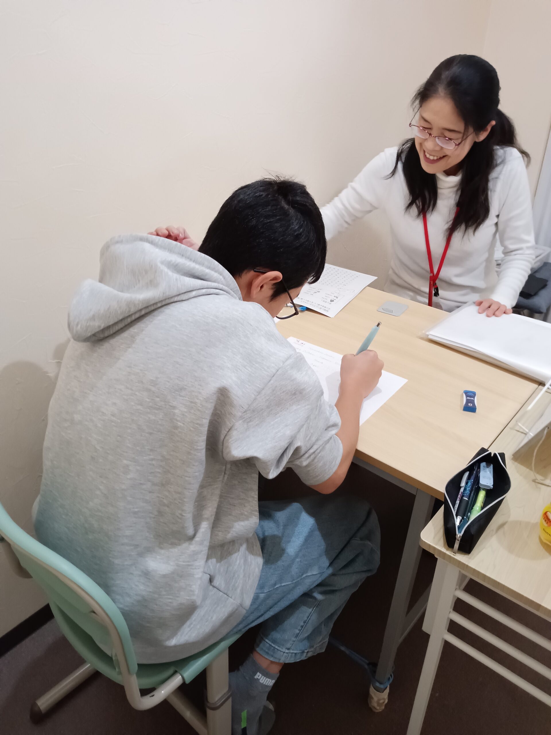 カタカナが苦手な彼ですが、書くことよりも読むことの方が苦手な様子。プリントには、世界の偉人の名前がカタカナで書かれています。それを順番に読んでもらいながら、ほんのちょっとだけその偉人さんについてお話をしました。例えば、『リンカーン』とあり、「この人はアメリカの大統領やった人やで。」と話すと、「トランプと一緒やん!」と返ってきました。また、『シェイクスピア』の説明では、劇作家という言葉は難しかったので、「お芝居を書いた人」とか「オペラにもなった作品があるねん」「オペラって知ってる?」「歌を歌いながら劇をするねん」と伝えると、「マイケル・ジャクソンやん!」と自分がマイケルが大好きなのでつなげていました。子どもたちに色々説明するのって、本当に難しいです。間違ったことを伝えないように、でもわかるように伝える。お互いの認識の違いから、おもしろい発想や勘違いが出たりするのですが、それもまたおもしろかったです。『偉人』と言う言葉も、「歴史に残るような、並外れて優れた人」なんて説明できず( ^ω^)・・・「世界ですごいことしやはった人」と説明しました。(すみません・・・)それでも、彼はそこから、電球を発明した「エジソン」や琵琶湖疎水に尽力した「田辺朔郎」なんて名前が飛び出してきました。カタカナとは離れたかもしれませんが、そんな時間がもてたことが嬉しく思いました。