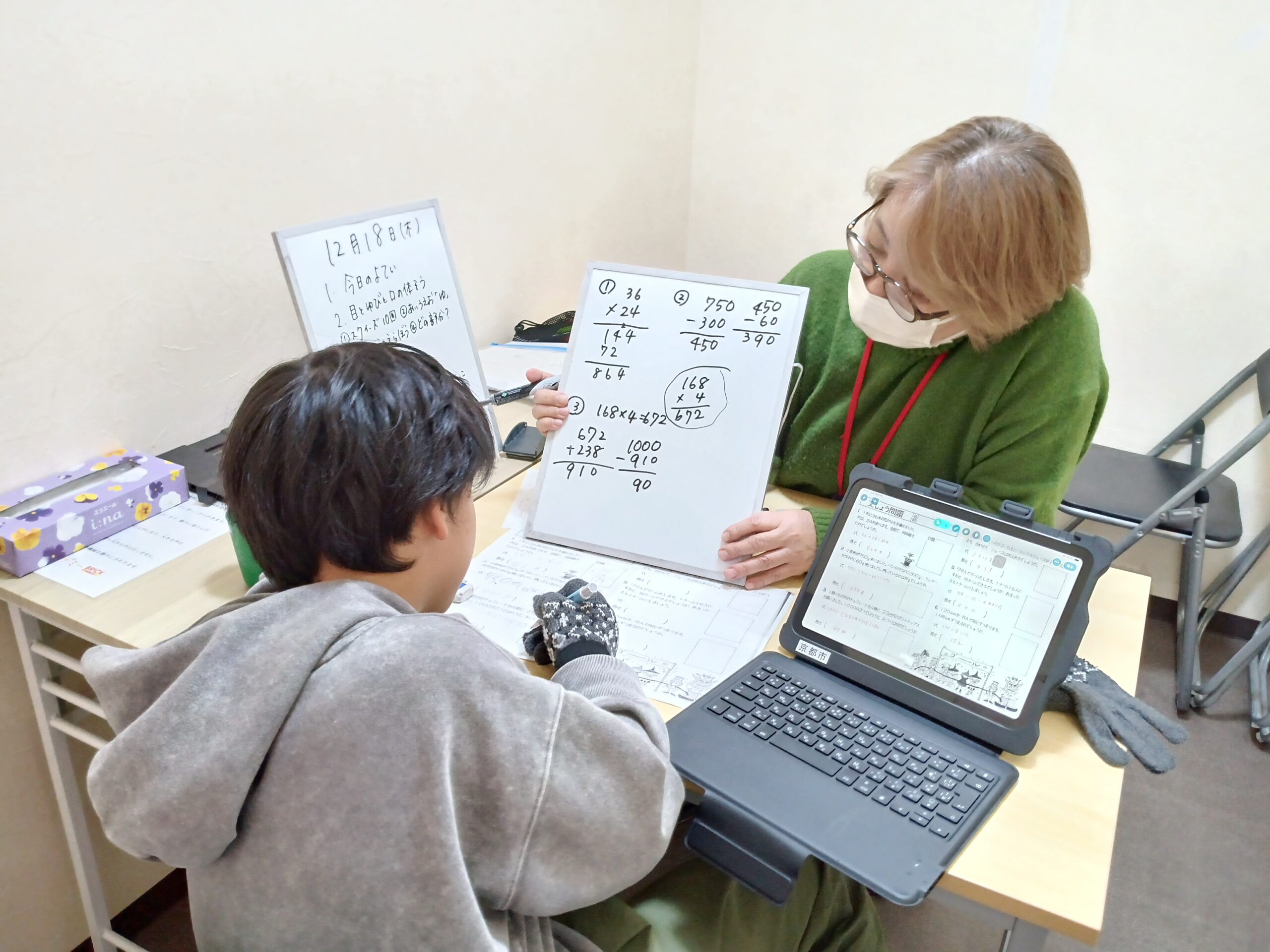 彼も文章題は苦手です。また、かけ算ばかりでなく、四則の計算が入り混じっています( ^ω^)・・・