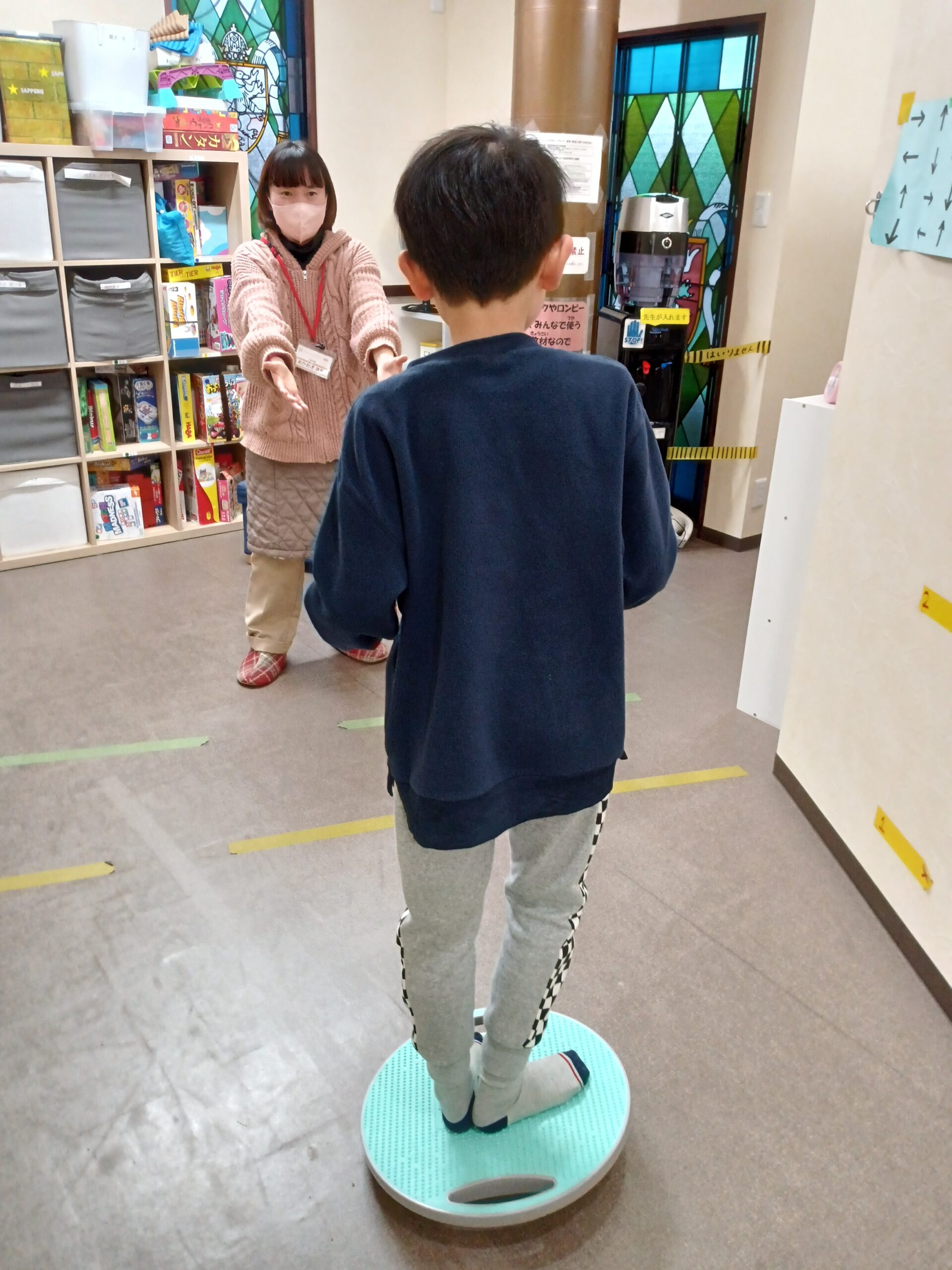 体幹を鍛えるために、バランスボードに乗りながらキャッチボールをしています。1人で乗れなかったのが、ひょいと乗ったり、時にはバランスボードの上に胡坐で座ってやりとりしている時もあります。継続は力なり~ですね!(^^)!