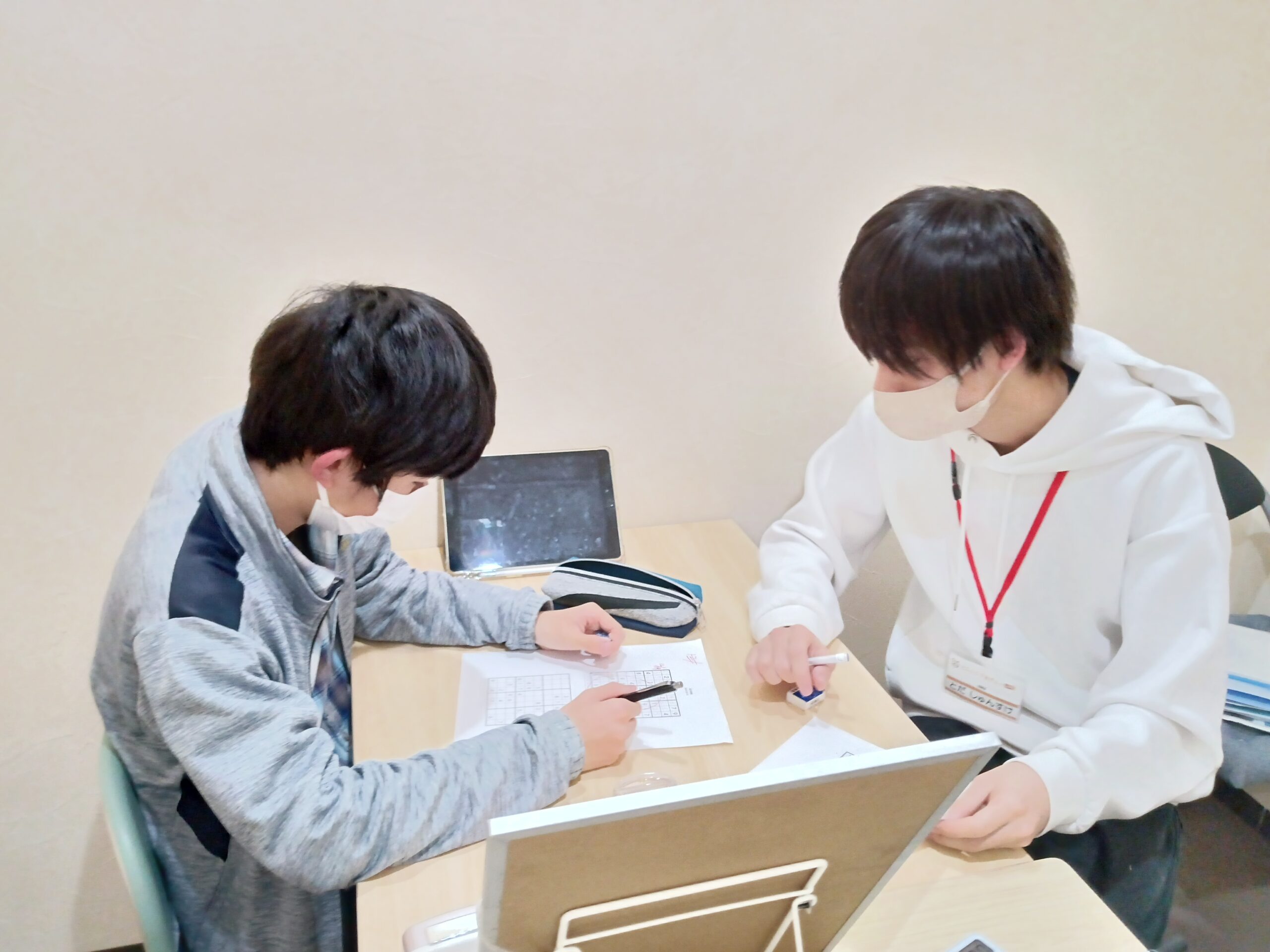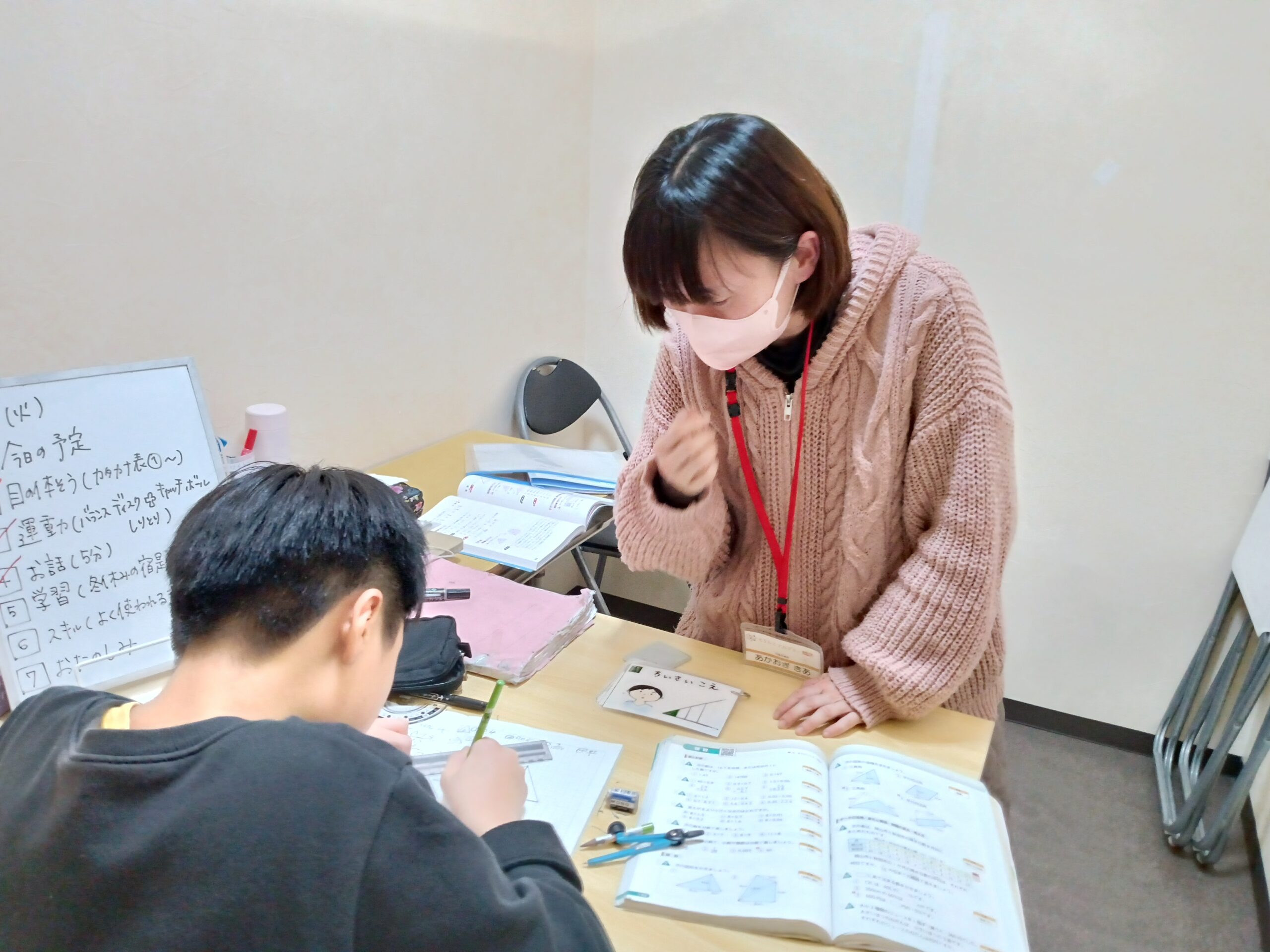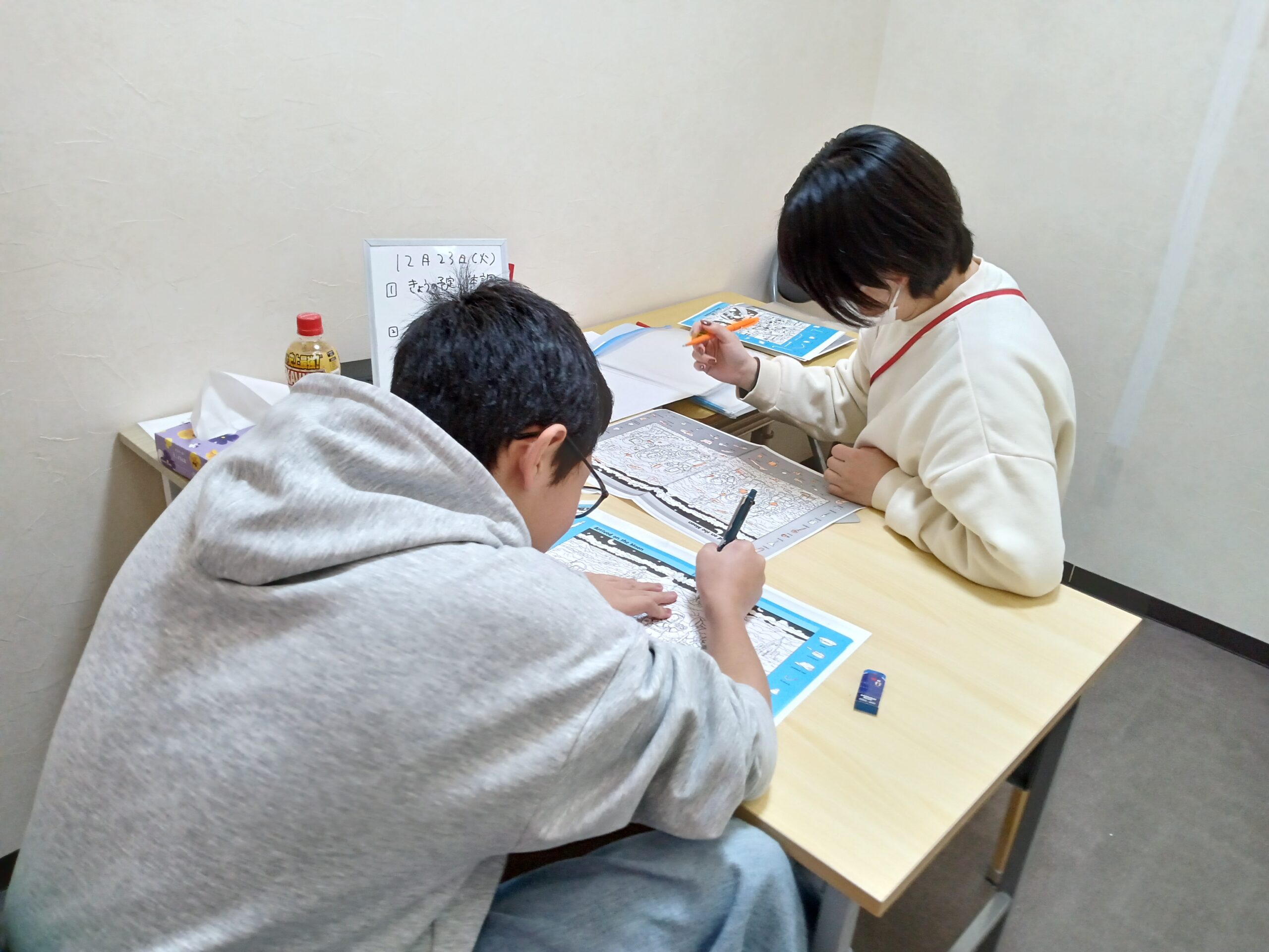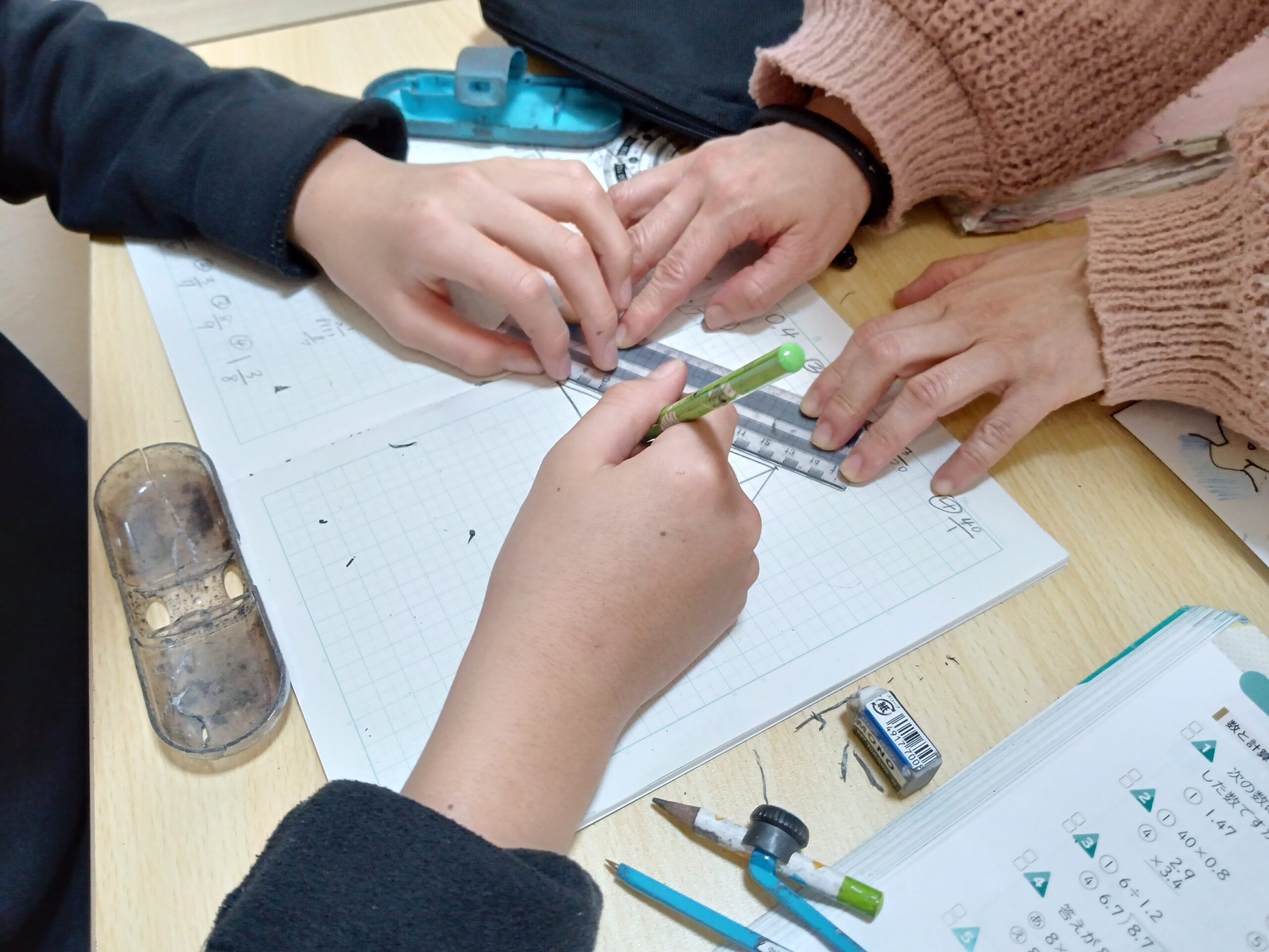 本日の画像は、ALL学習個室での活動ですが、一人ひとりのカリキュラムで内容が違っています。分度器の使い方で苦戦している子には少しでもスムーズに使いこなせるようにコツを伝えたり、受験が終わりホッとしている子にはリラックスタイムを多めに設定をしたり、と様々です。
