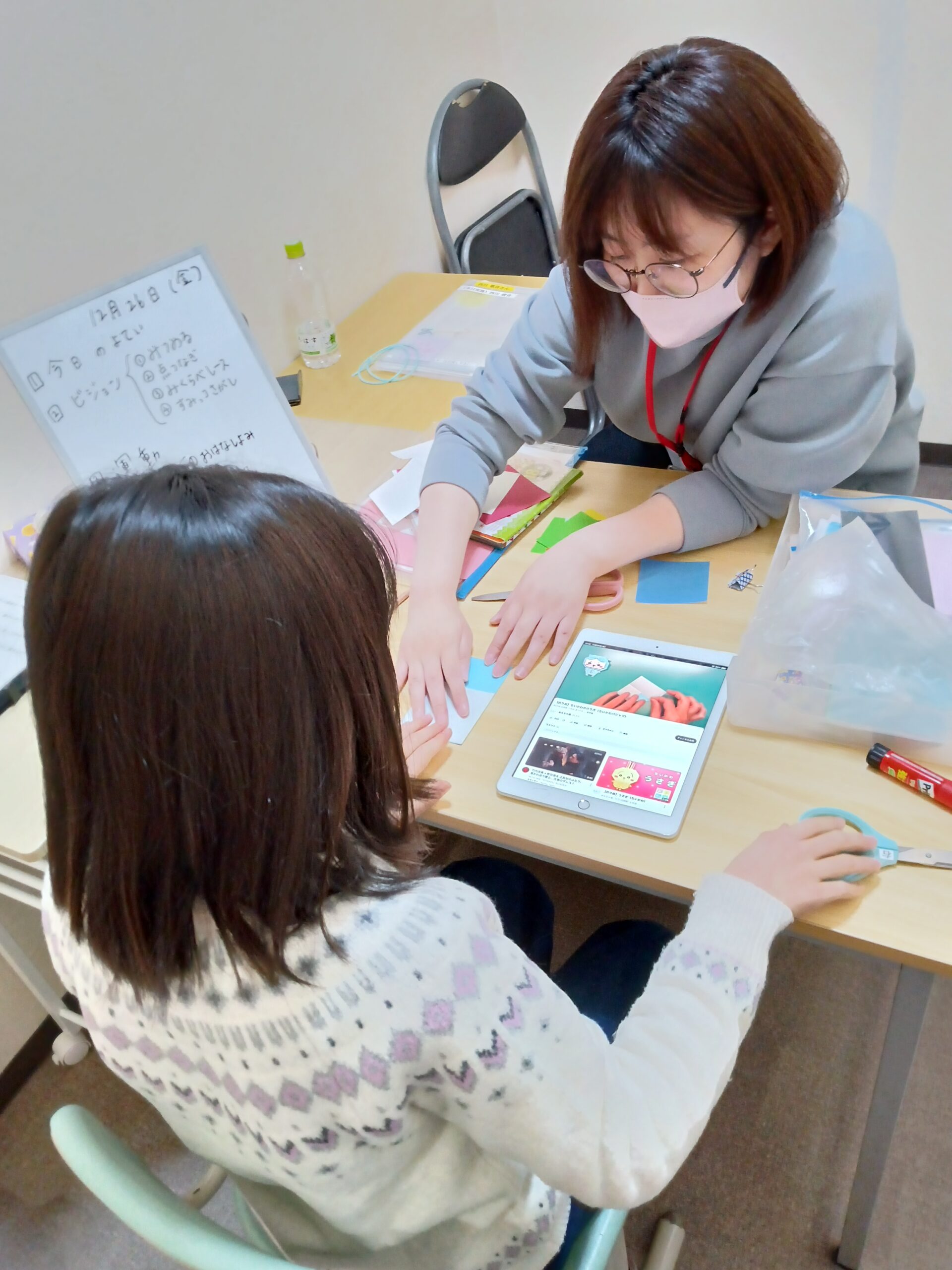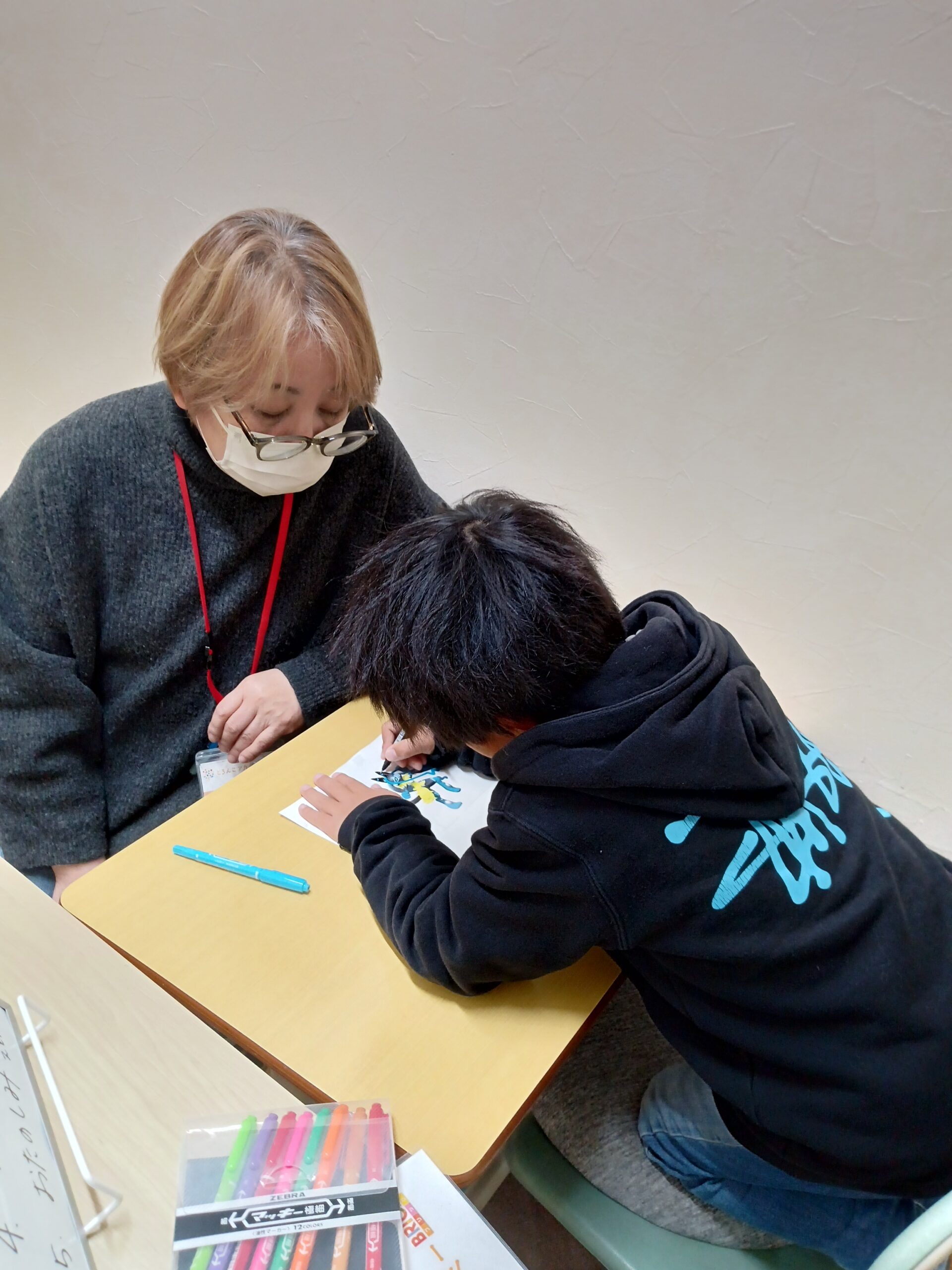 最後の3枚の写真を紹介します。お正月には家族で楽しむ人もいると思います、百人一首の様子です。次は、子どもたちに人気のちいかわの折り紙に取り組んでいる様子です。そして最後の写真は、「プラ板キーホルダー」を作っている様子です。お楽しみの時間や、リラックスの時間は、自分の好きなことに取り組める貴重な時間だと、再認識しました。