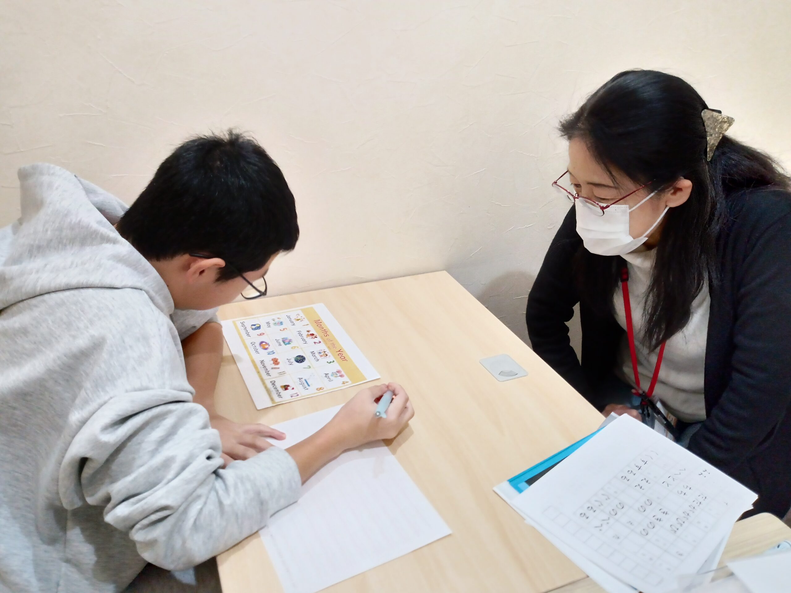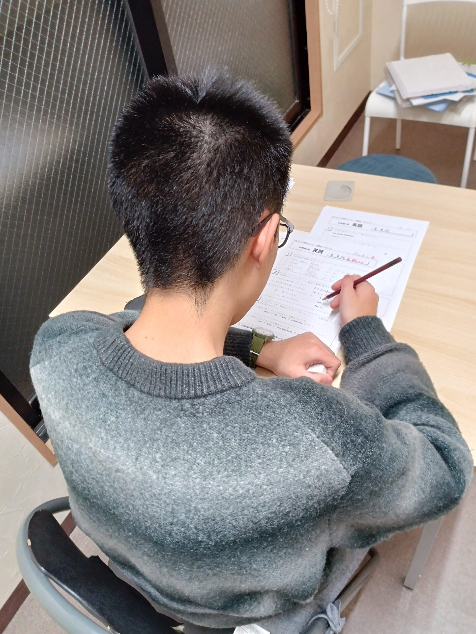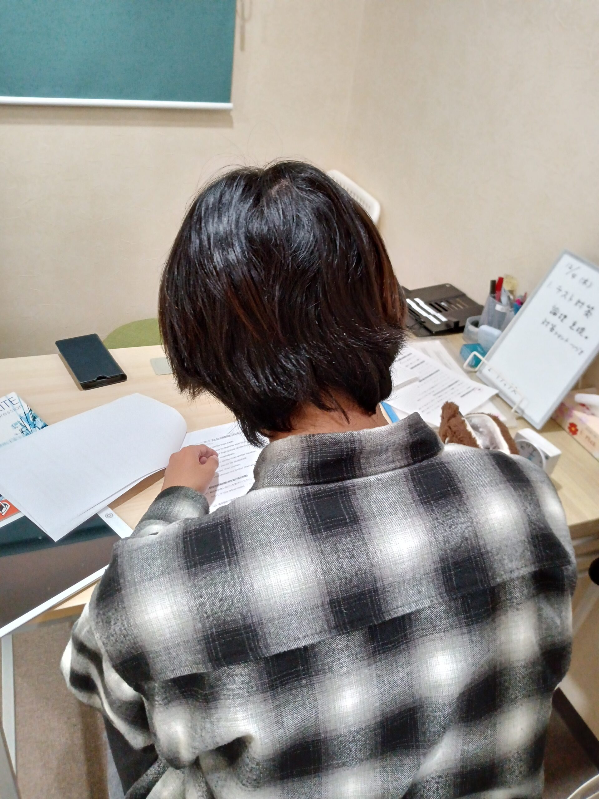 木曜の17:30~後の時間は、中学生以上が多く、みんな課題やテスト勉強や何かしら机に向かってプリントを拡げている姿が多いです。