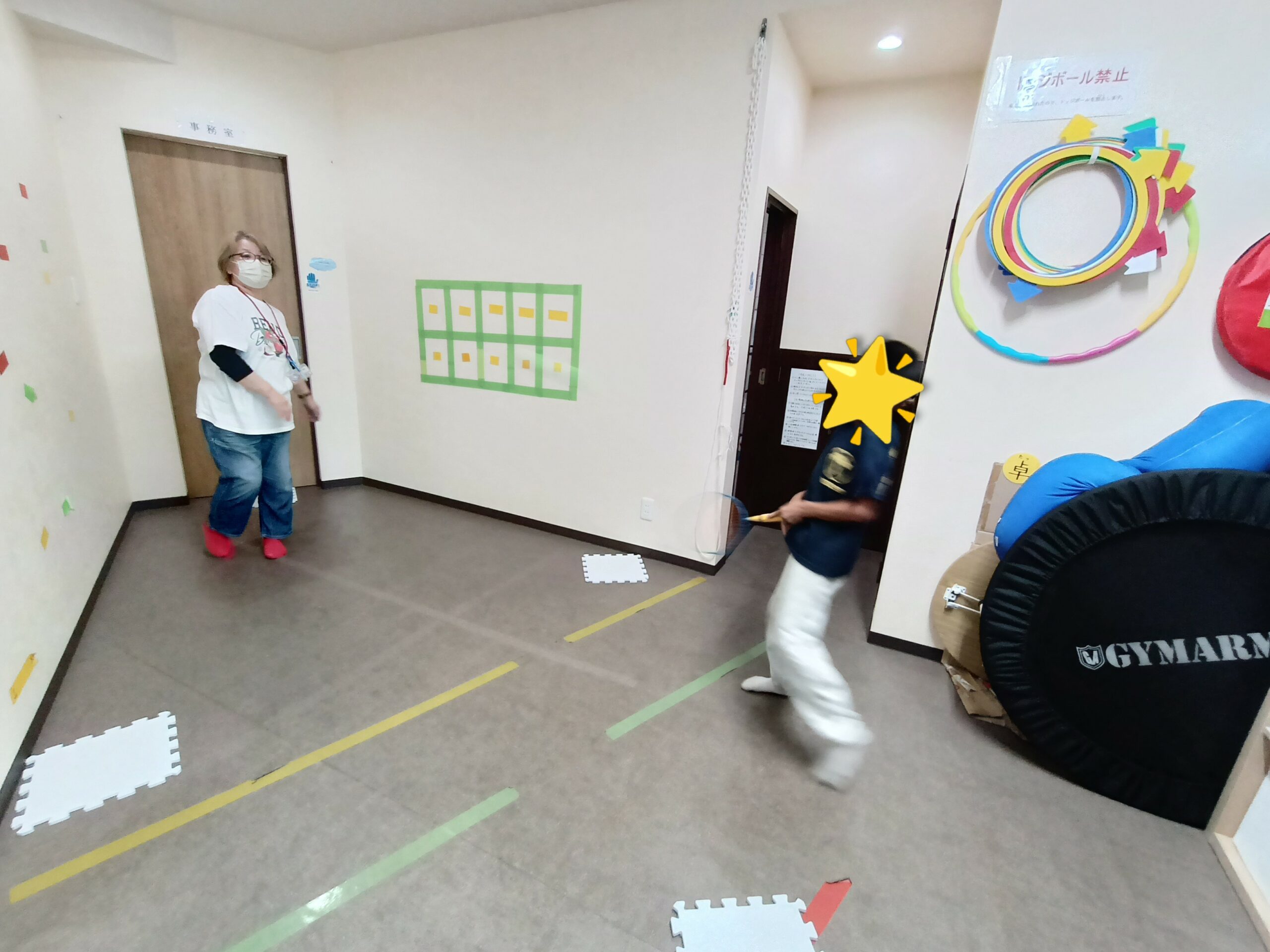 こちらも大好きなサッカーに取り組んでいます。スタッフにボールを取られないように頑張っっています。