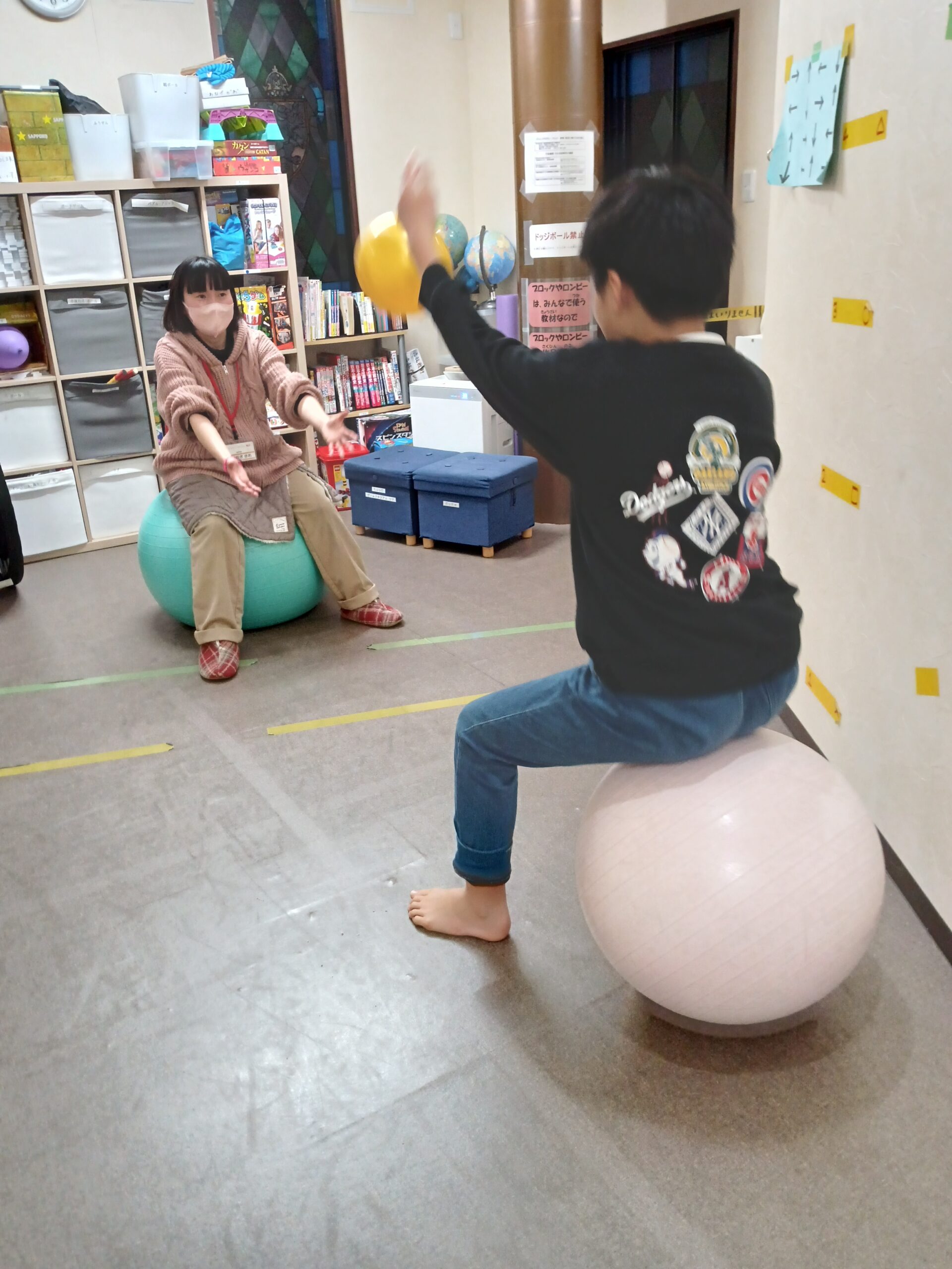 しりとりをしながらキャッチボールをしているのですが、いろいろな言葉が飛び交って聞いていて面白かったです(#^.^#)