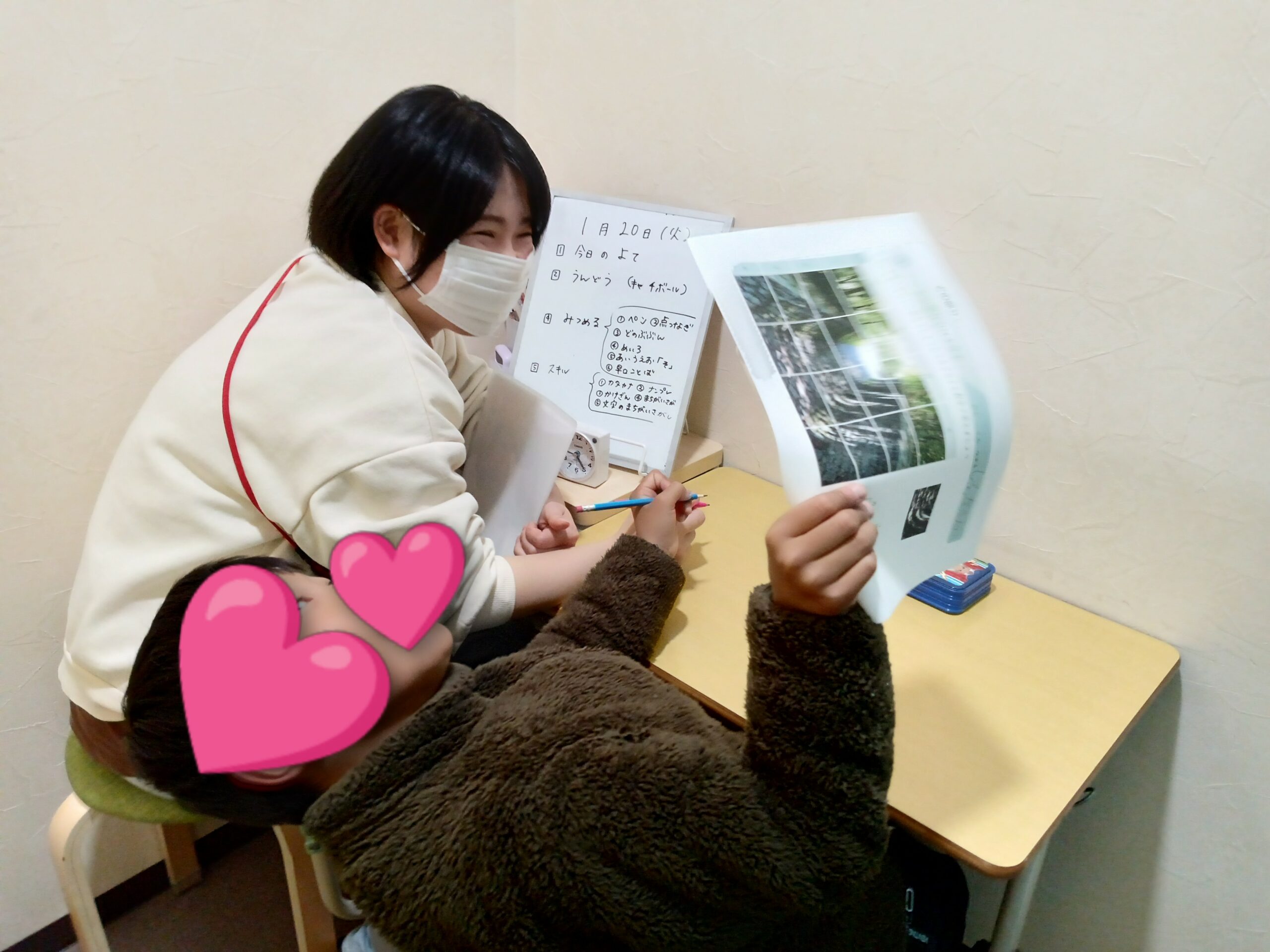 写真を撮りに来たスタッフに、「先生、見て!すごいやろ!」と見せてくれました。可愛らしいですね(#^.^#)