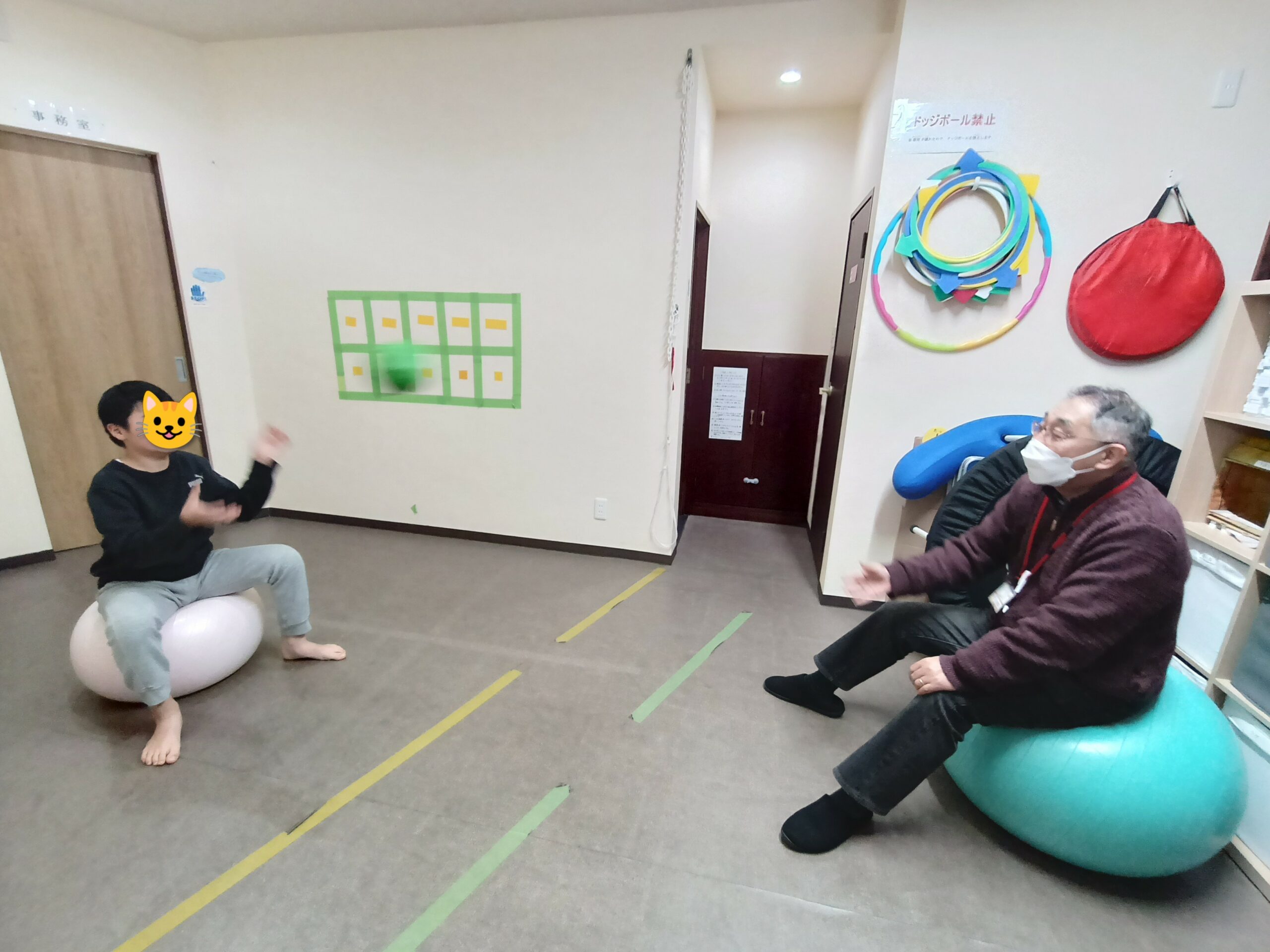 来月に学校のイベントでドッジボール大会があるらしく、キャッチボールをして特訓中です。と言っても室内なので、思い切りなげるよりもふんわりと投げる約束をして活動しています〰