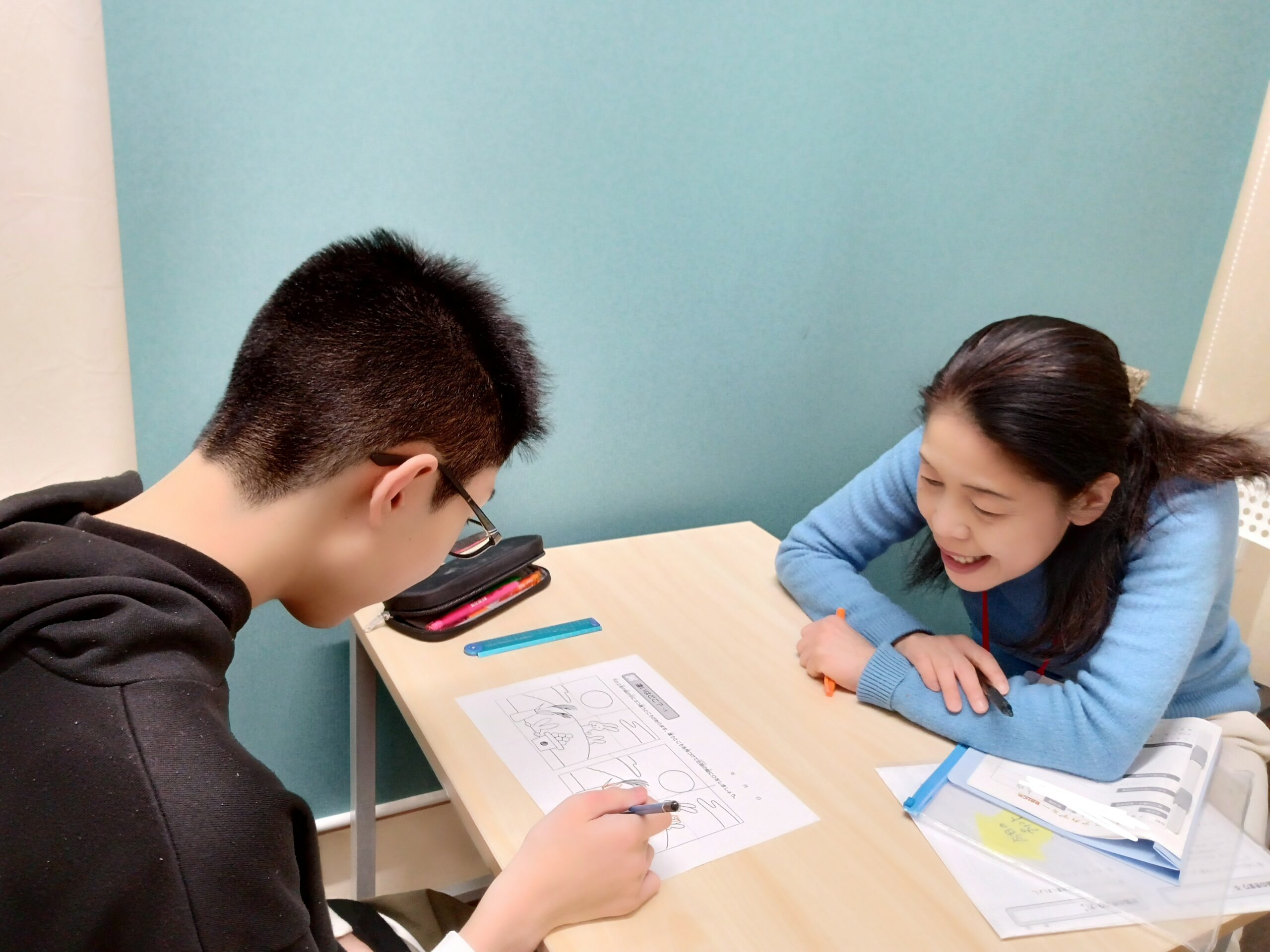 少し難しい間違い探しに挑戦しています。途中でスタッフから線を書き足してみるようにアドバイスを受けて、早速、取り入れていました!(●^o^●)