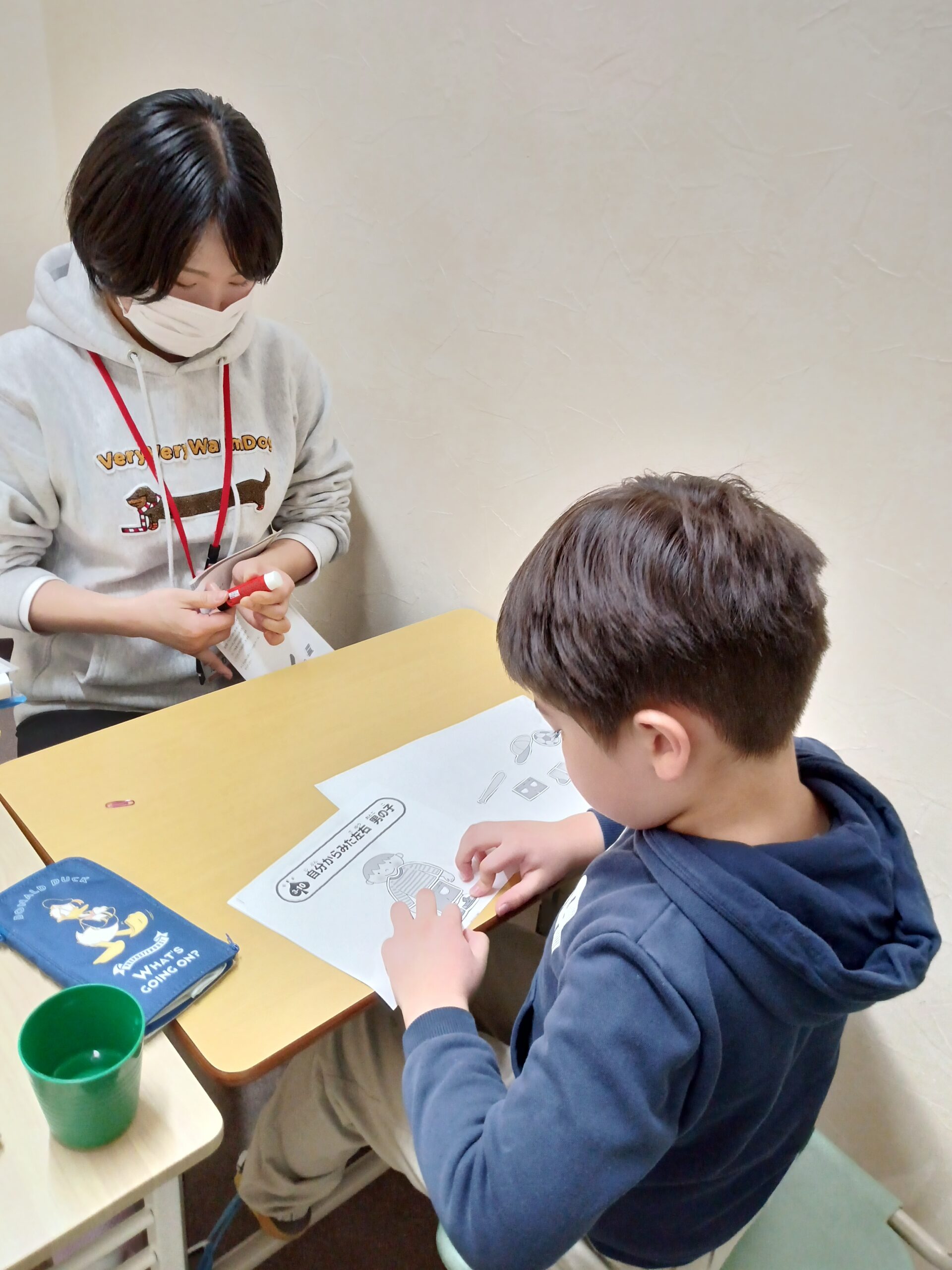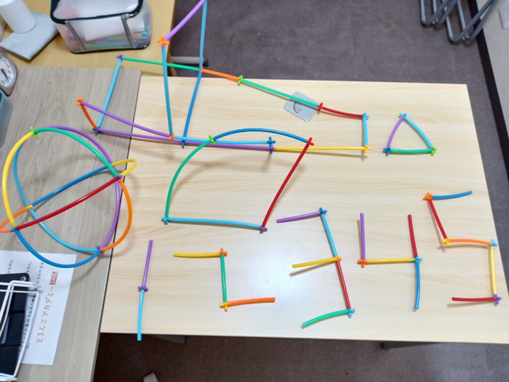 4枚目の画像は、「ロンビー」という教材で様々な形を作る取り組みです。これはビジョントレーニング(視機能)であり、コグニティブトレーニング(認知)でもあります。どのようにつなげれば、どんな形になるか? はたまた、この形を作るにはどことどこをつなげたらいいのか? 考えてもらいながら活動しています。