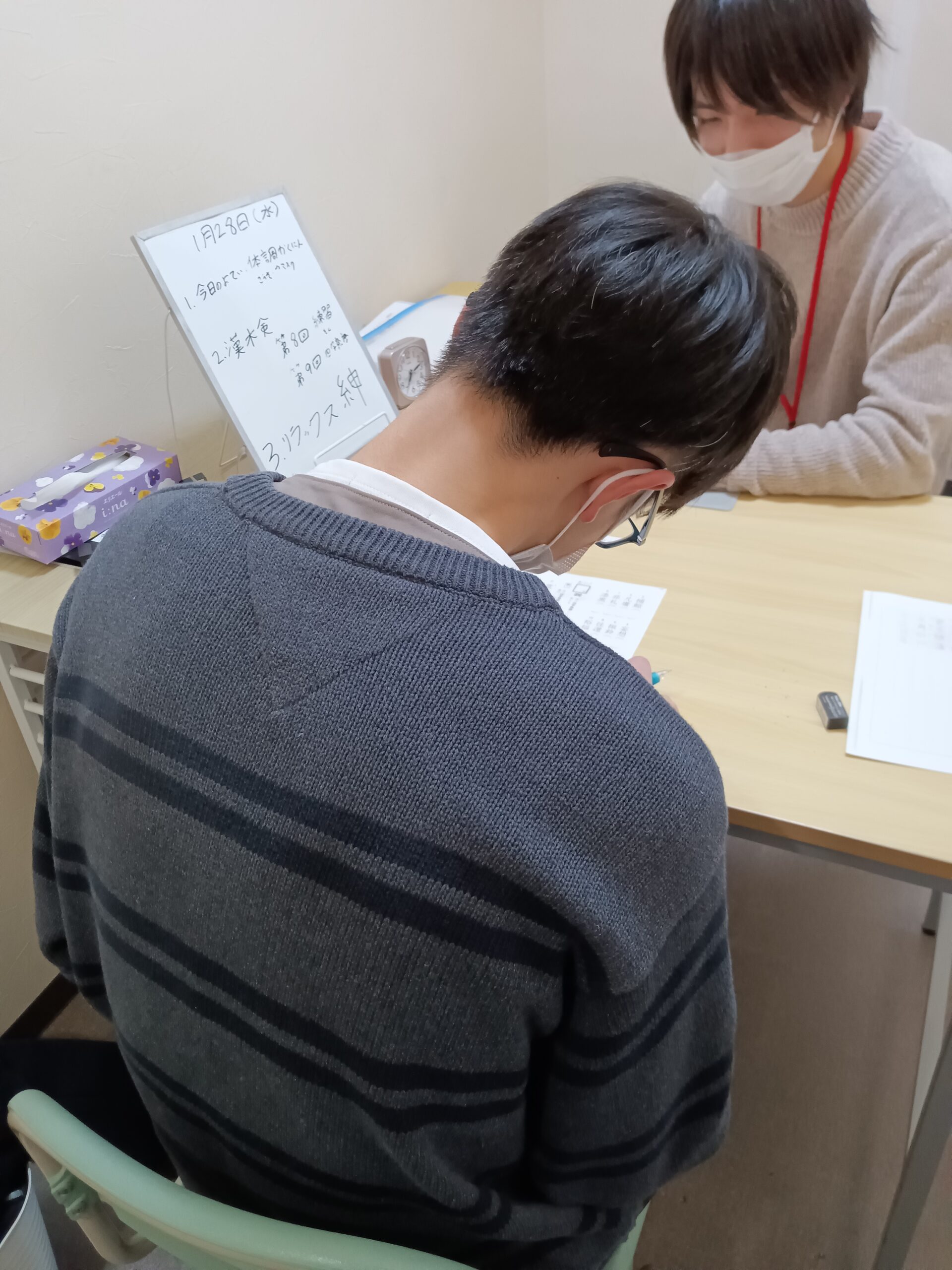 カリキュラムの1番目には全員必ず『予定の確認』を入れていて、この時間に宿題があるのかないのか?家でやってきているのかいないのか?の確認をします。また、スタッフはその分量によってビジョントレーニングやコグニティブトレーニングの時間がどれぐらい確保できるか考えて調整しています。