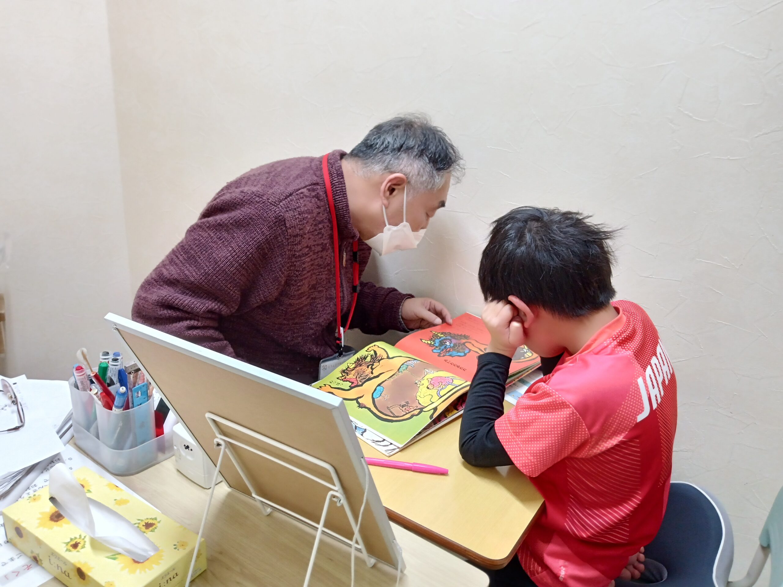 今日は、肌寒い一日でしたね。最後の画像は、JAPANのシャツを着て、タブレット学習に取り組んでいる子どもの様子です。「かっこいいねぇ」と、声をかけると、照れくさそうでしたが嬉しそうでした。今月もあと2日。来月には、冬季オリンピックが開幕します。日本選手の活躍を願いつつ、楽しむことの大切さも忘れないでほしいと思います。