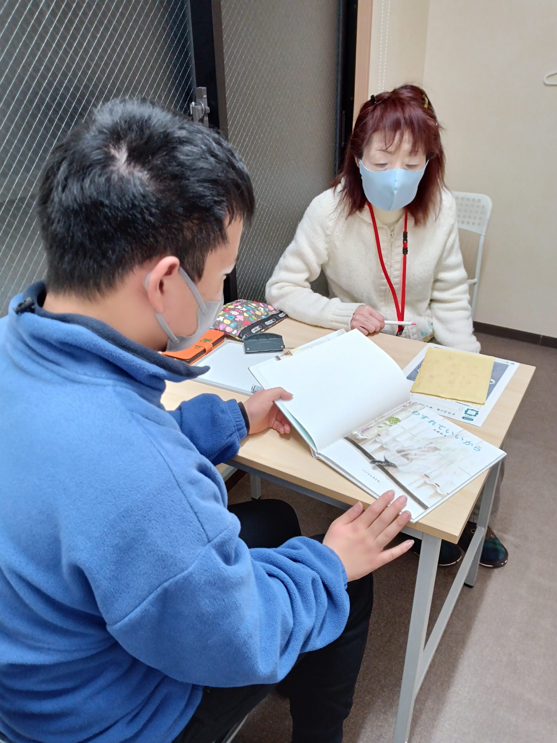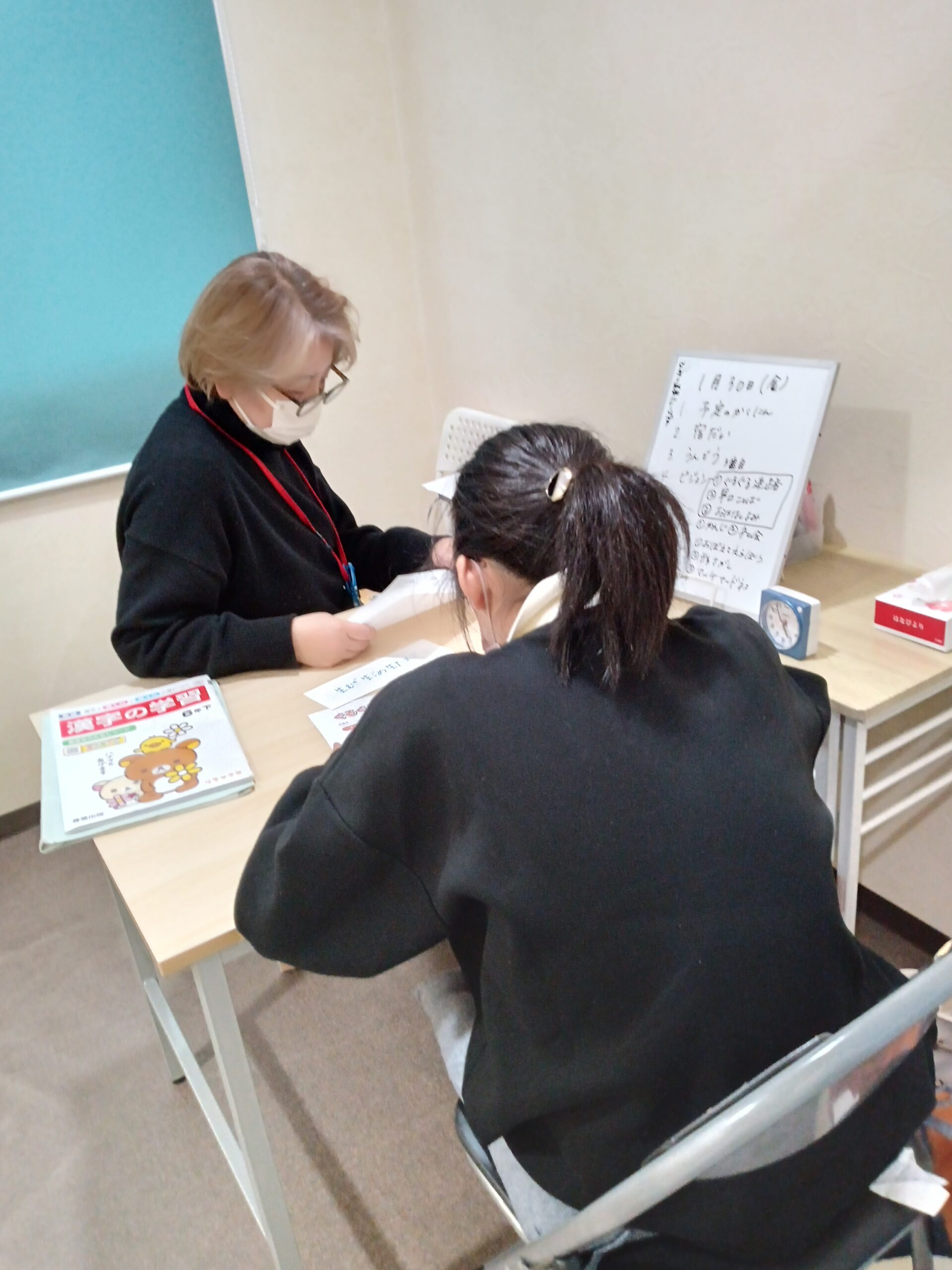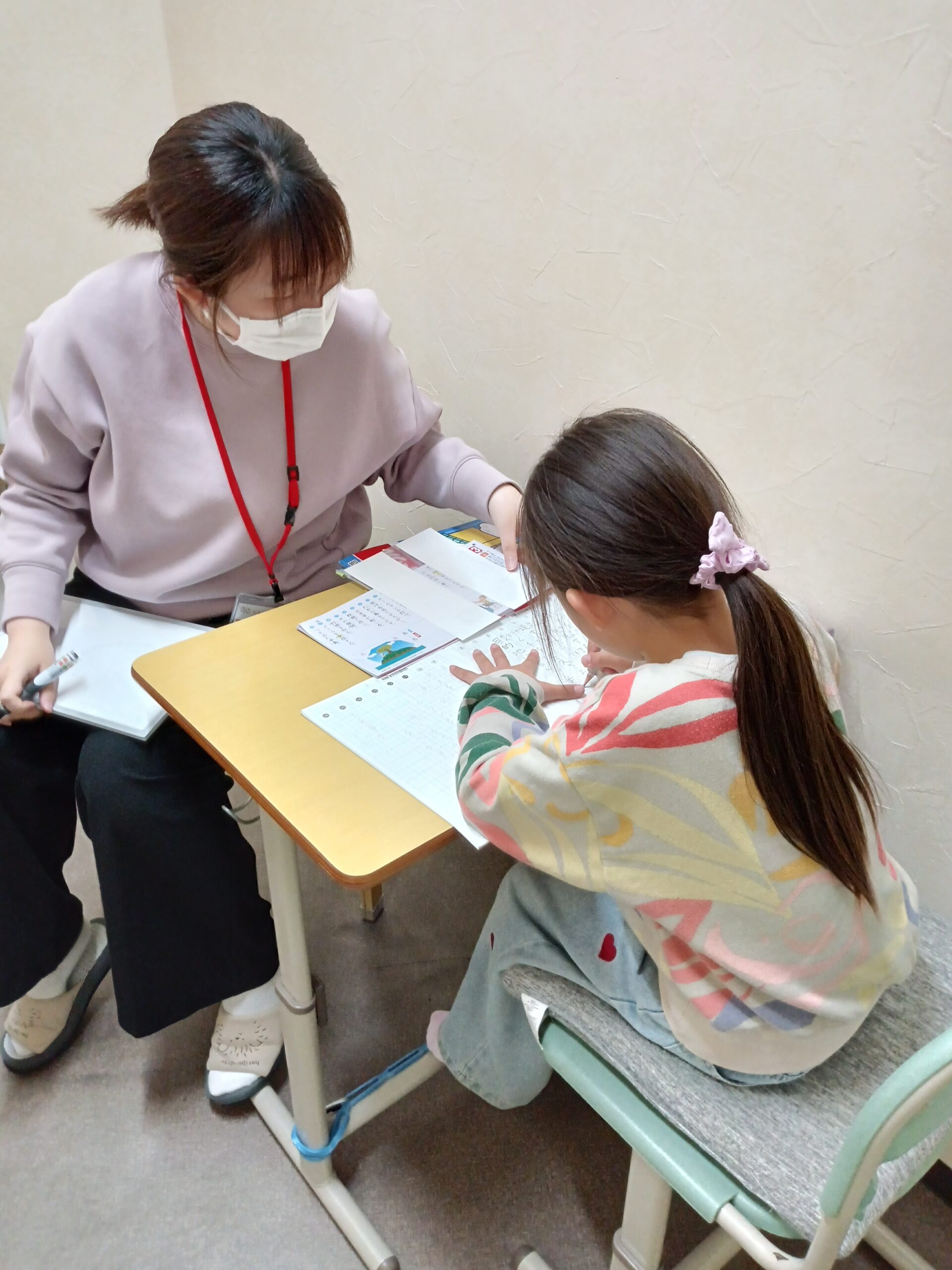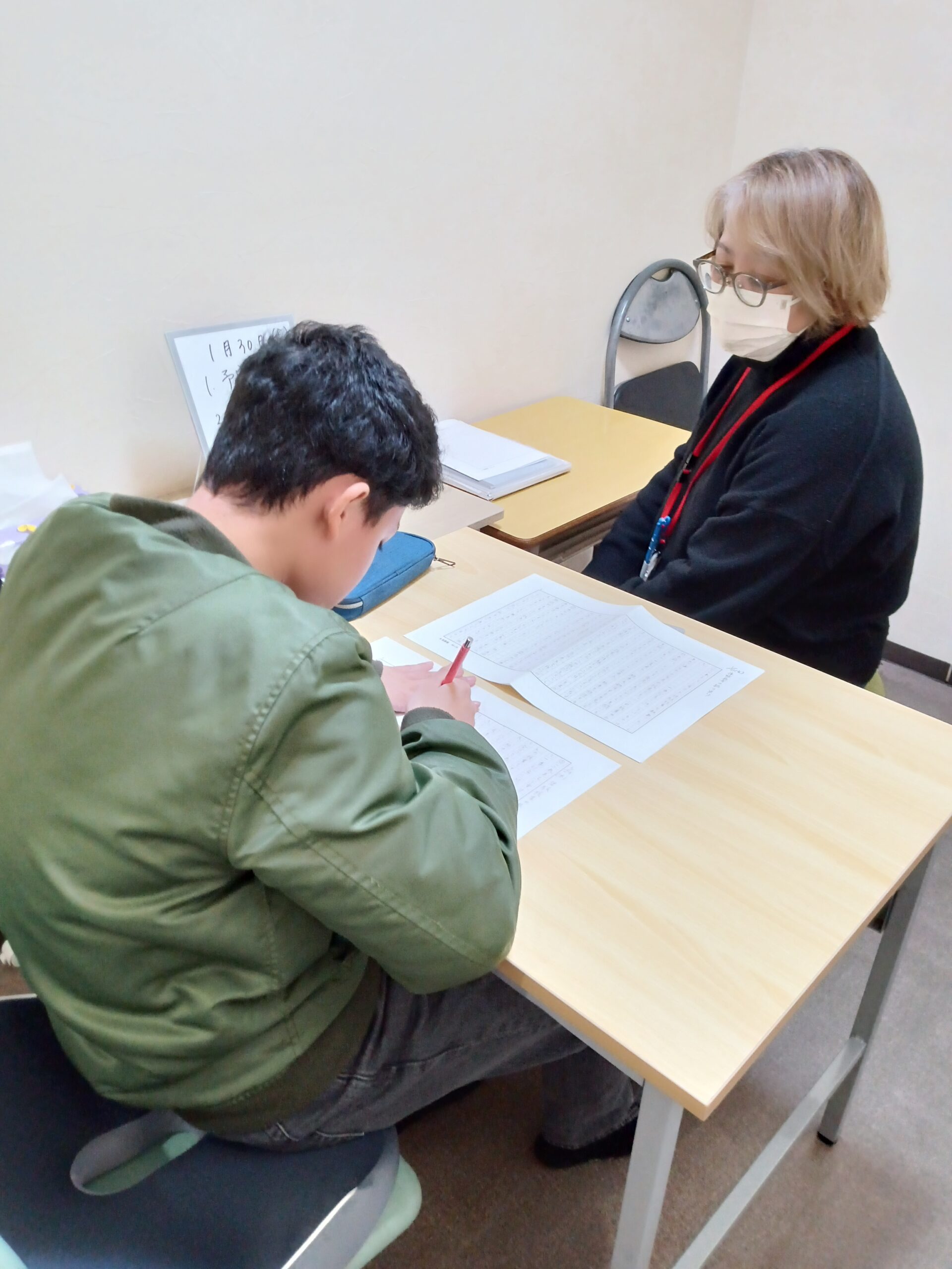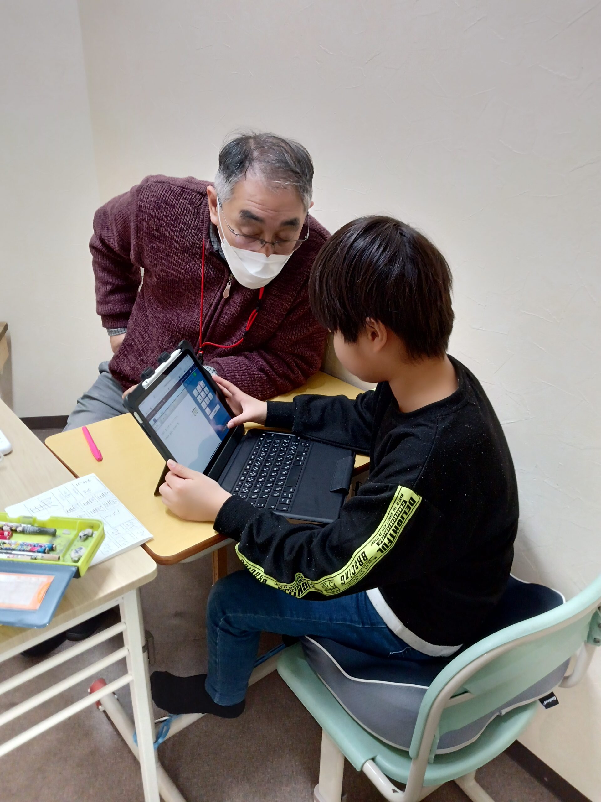 宿題が終わり、ビジョンプリントに取り組んでいます。取り組みながら、学校での出来事や最近見た映画の話などいろいろな話をしてくれています~