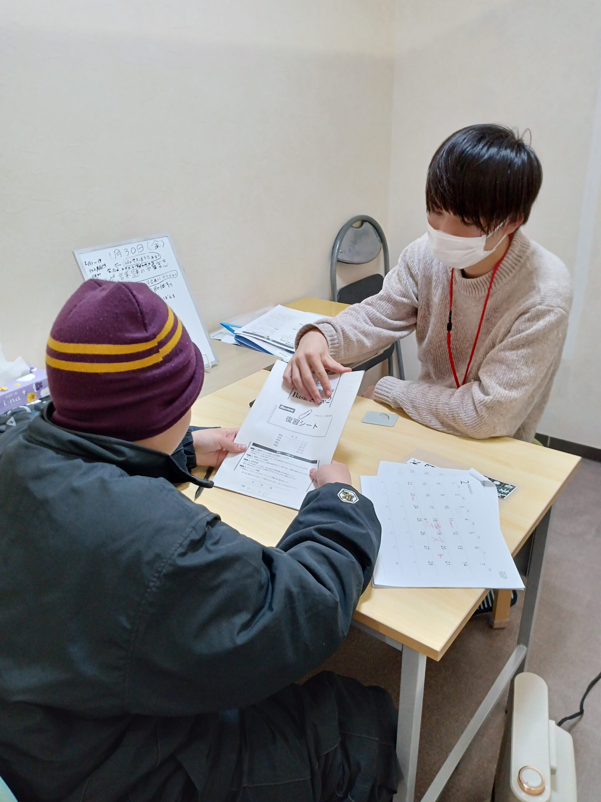 ジョイプロの復習シートに取り組んでいます。カレンダーに書き込んで計画的に進めるよう伝えています。