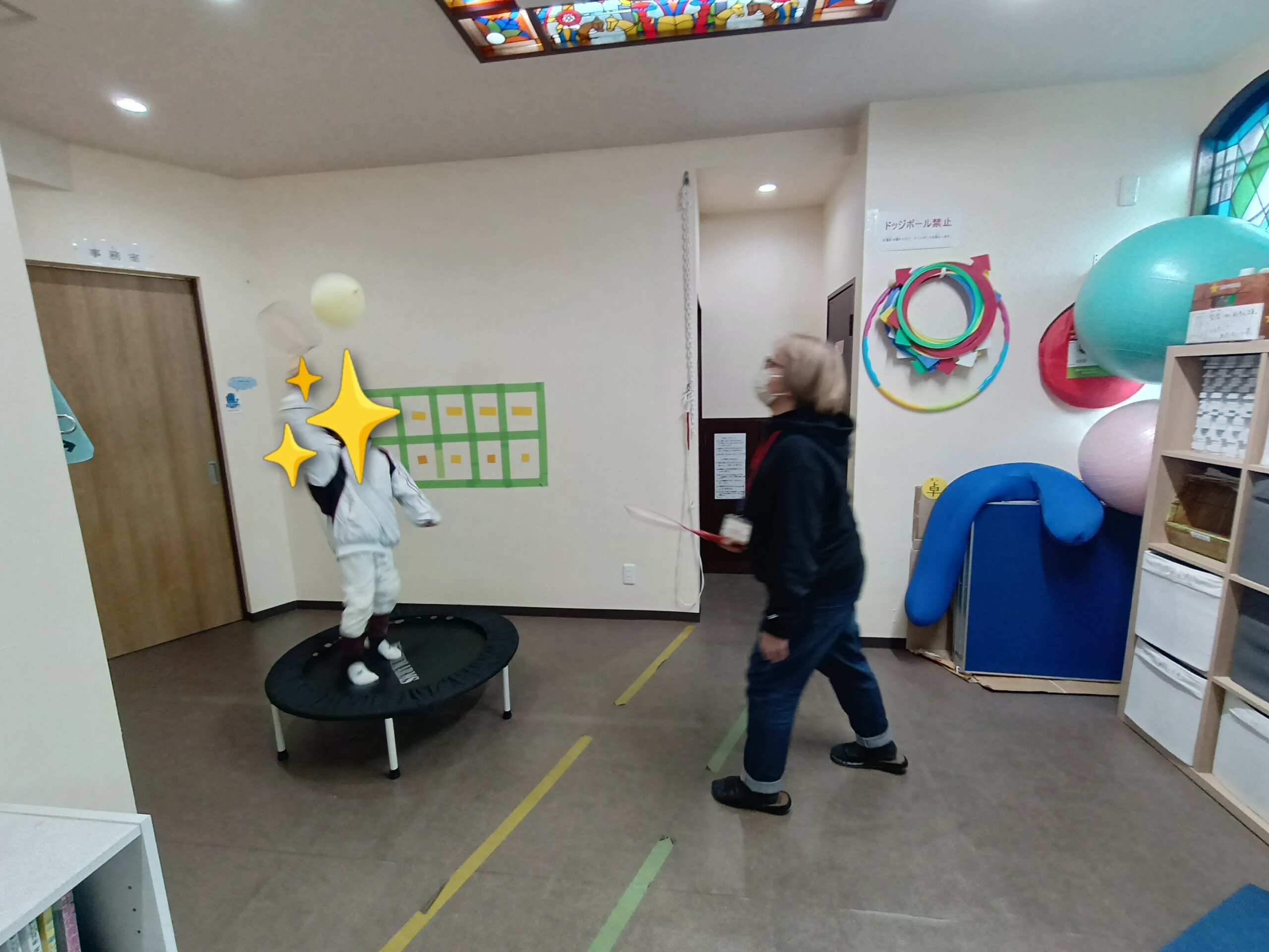 今日の絵本は「にんじゃいぬタロー」。まずは表紙のいぬに突っ込みを入れていました。「インパクトのある顏してるなぁ~!!」 楽しんで活動してくれたようです。