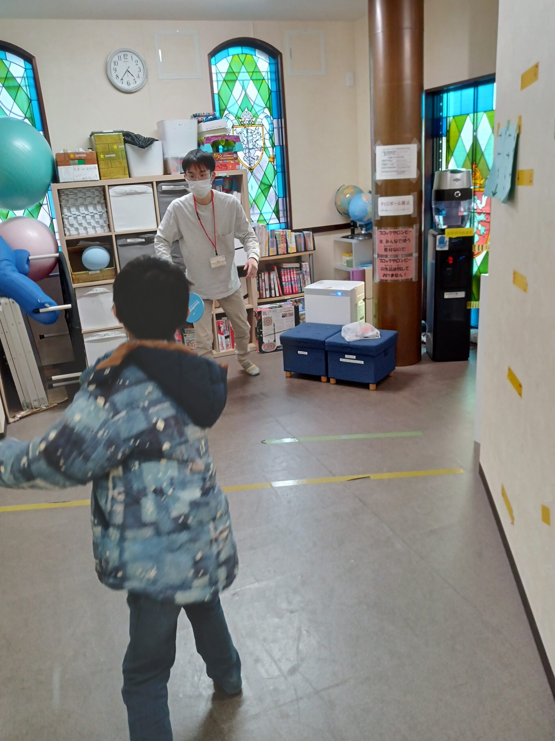 まずは、グッドミントンにはまっている小学生からです。羽が身体で隠れてしまっていますが、うまく打ち返せたようです(`・ω・´)b 5分間身体を動かしで、リラックスタイム↓もしっかりゆっくりできていました。