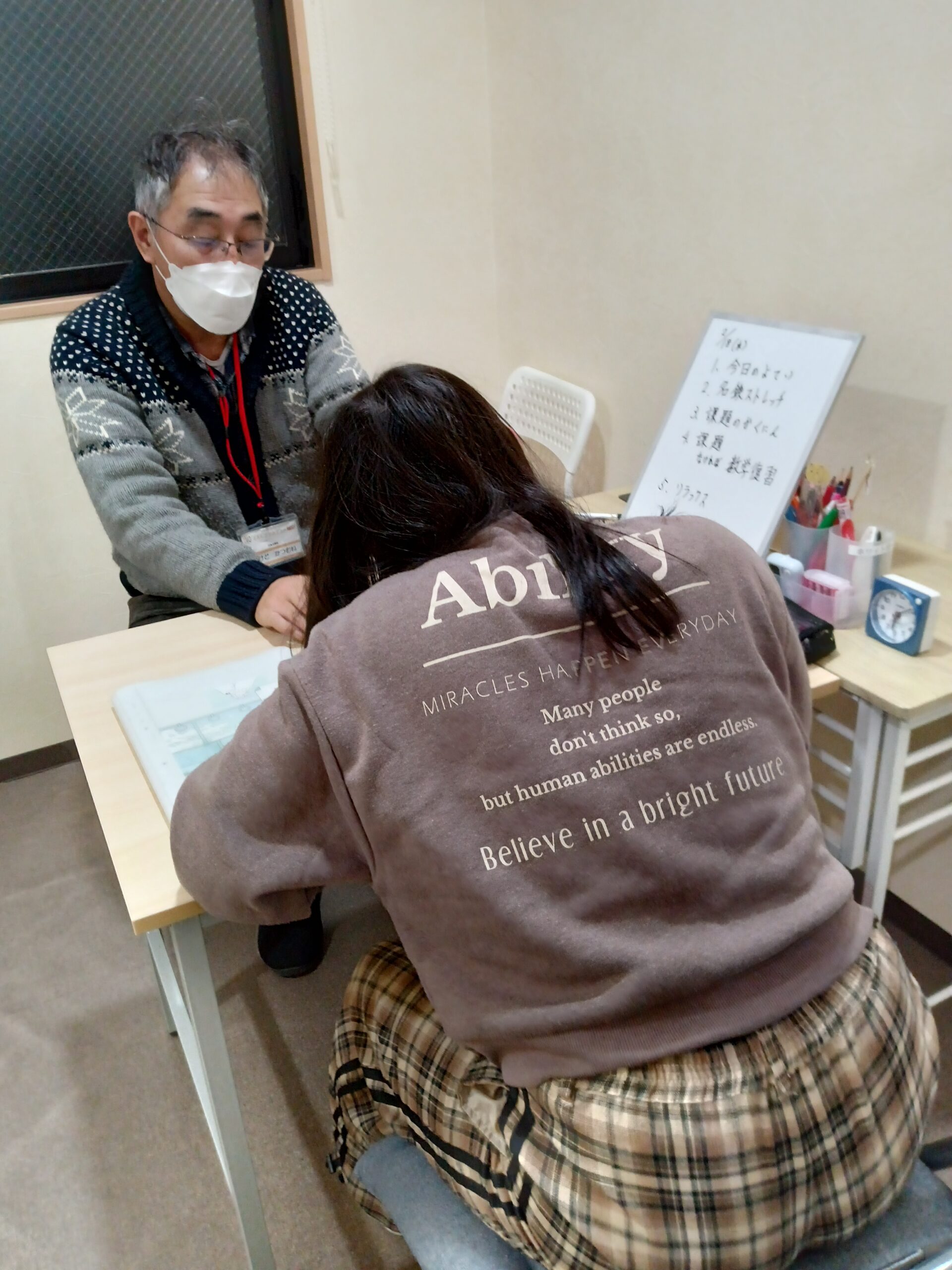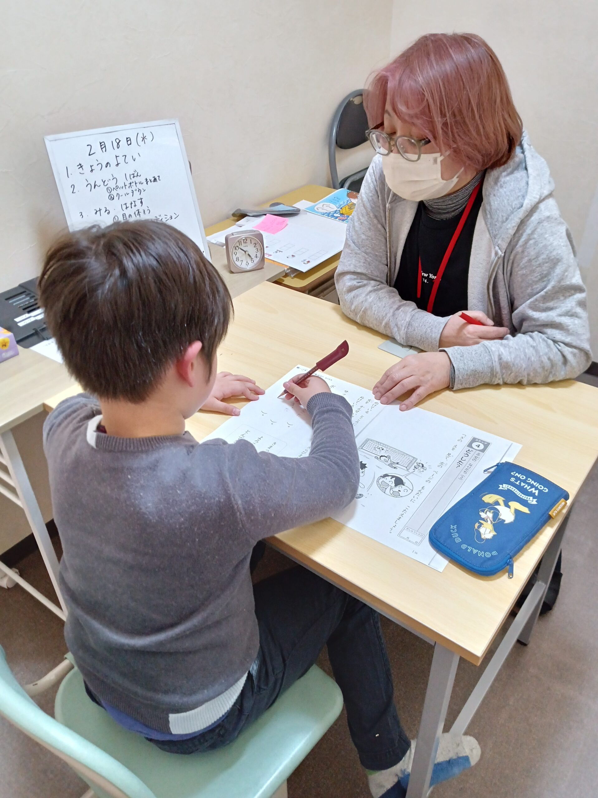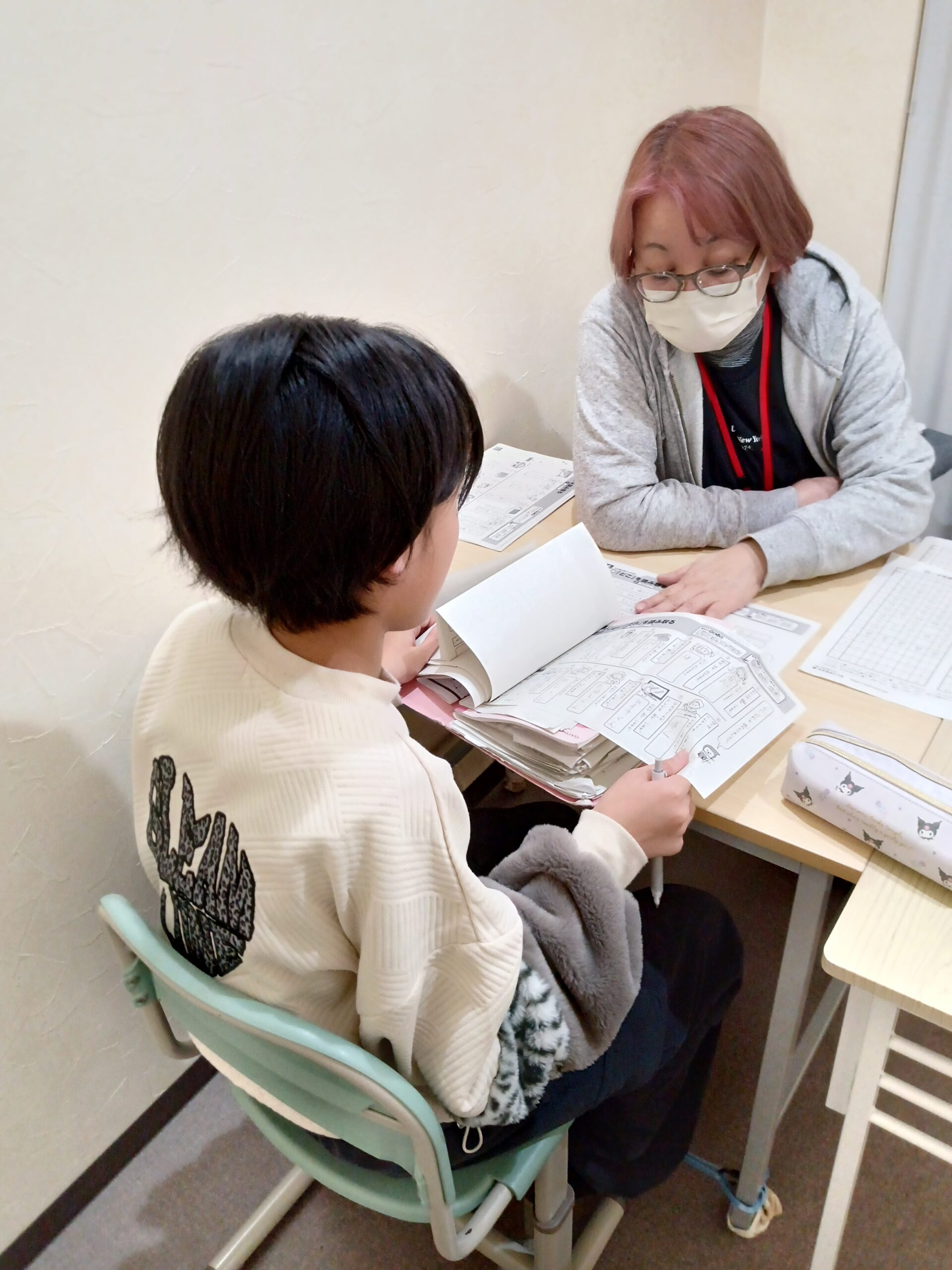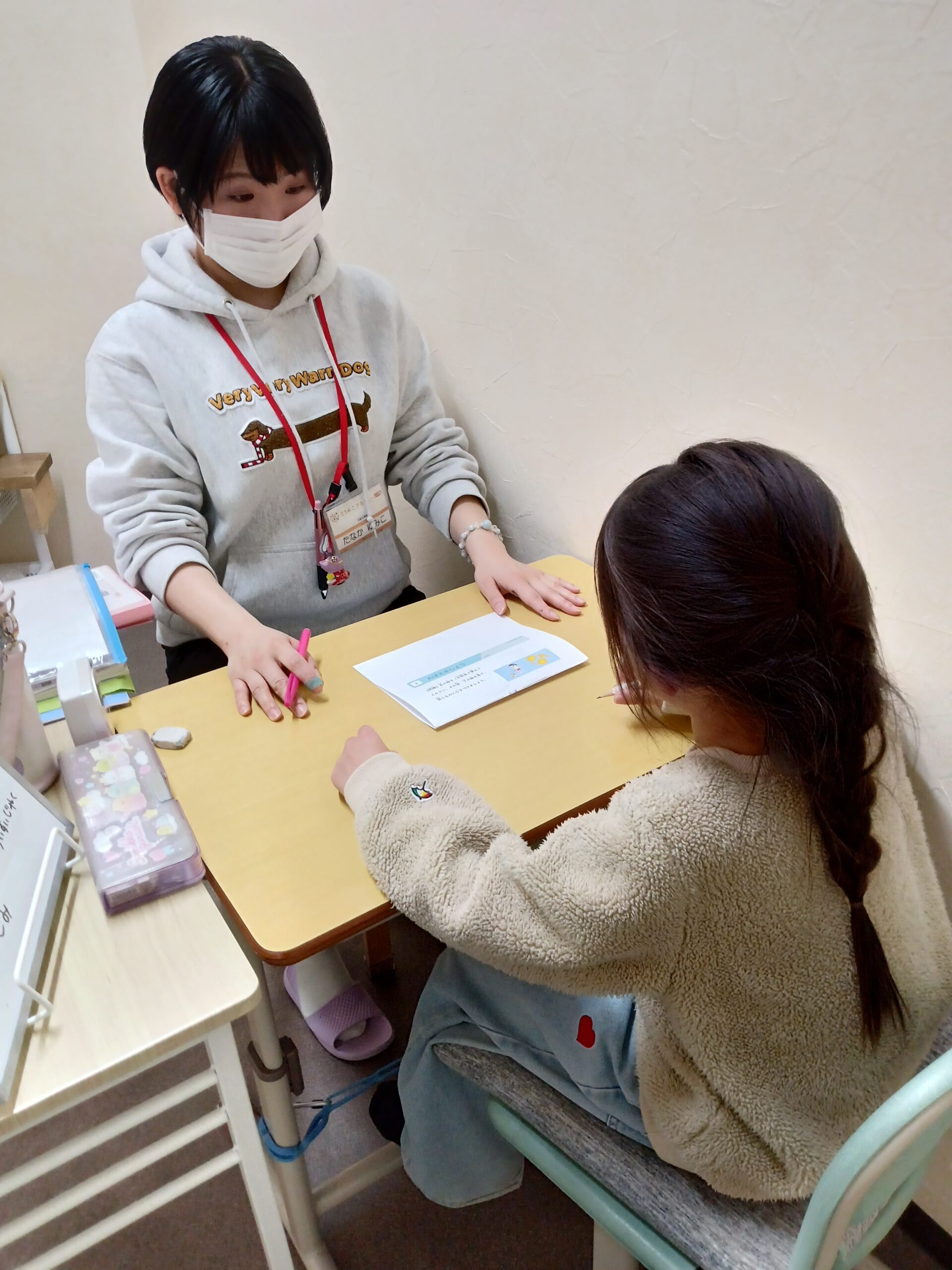 言葉のプリントに取り組んでいます。選択肢があるので考えやすそうです👀