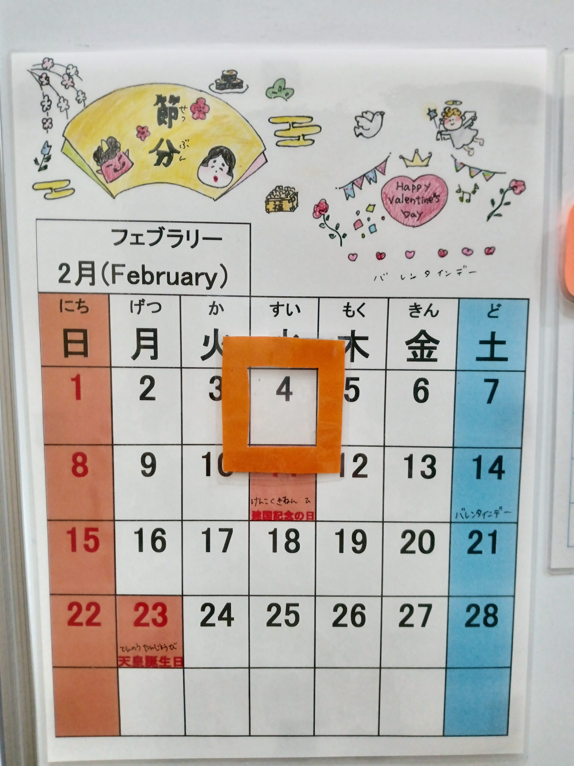 最後の画像は、遅ればせながらブリック名物の手作りカレンダーです。イラストには、節分とバレンタインデーを採用して、『和』と『洋』の両方の要素を取り入れました。