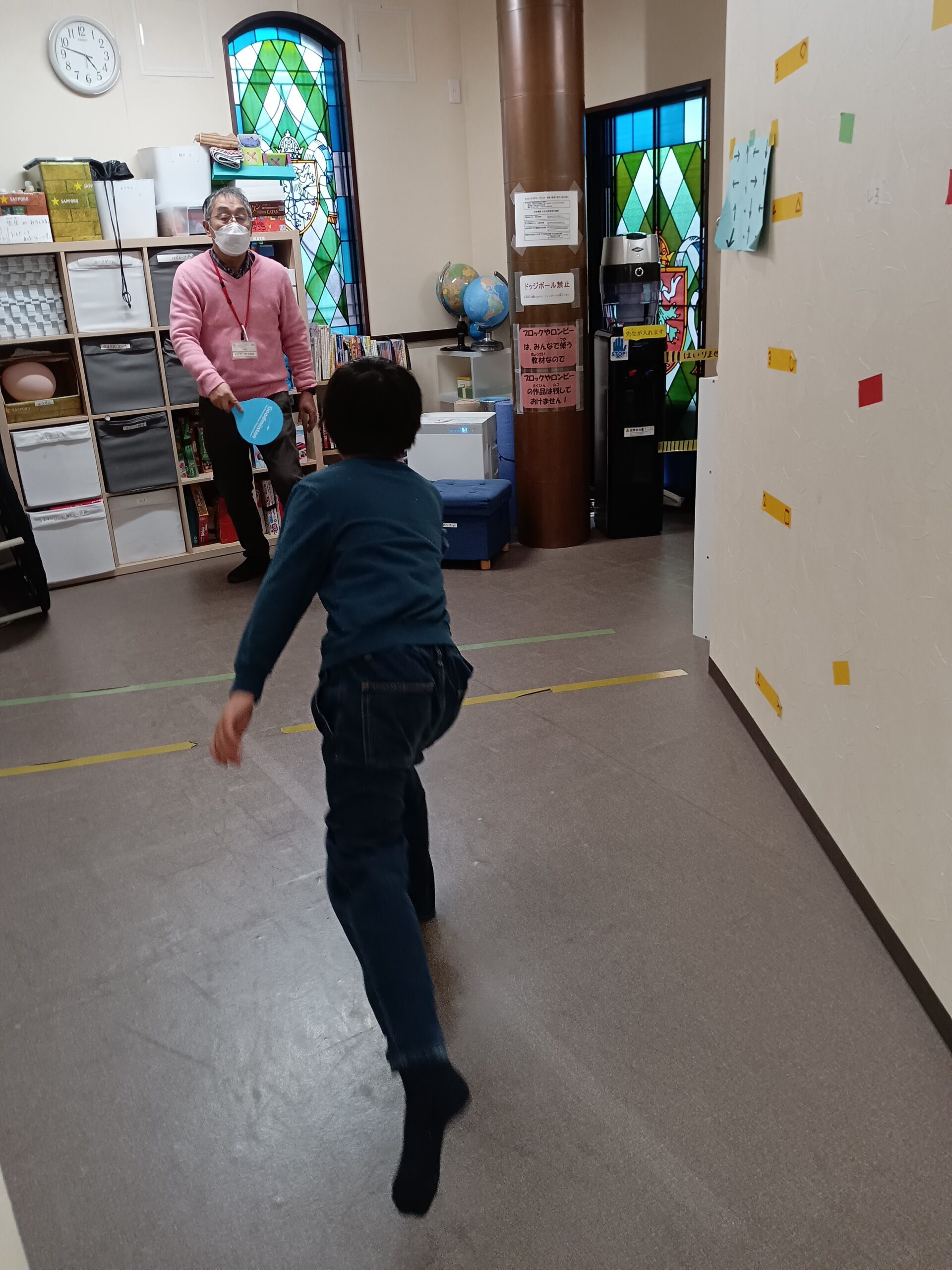 初めは小学生のグッドミントンです。身体をうまく使って返しています。だんだんラリーが続くようになってきました!