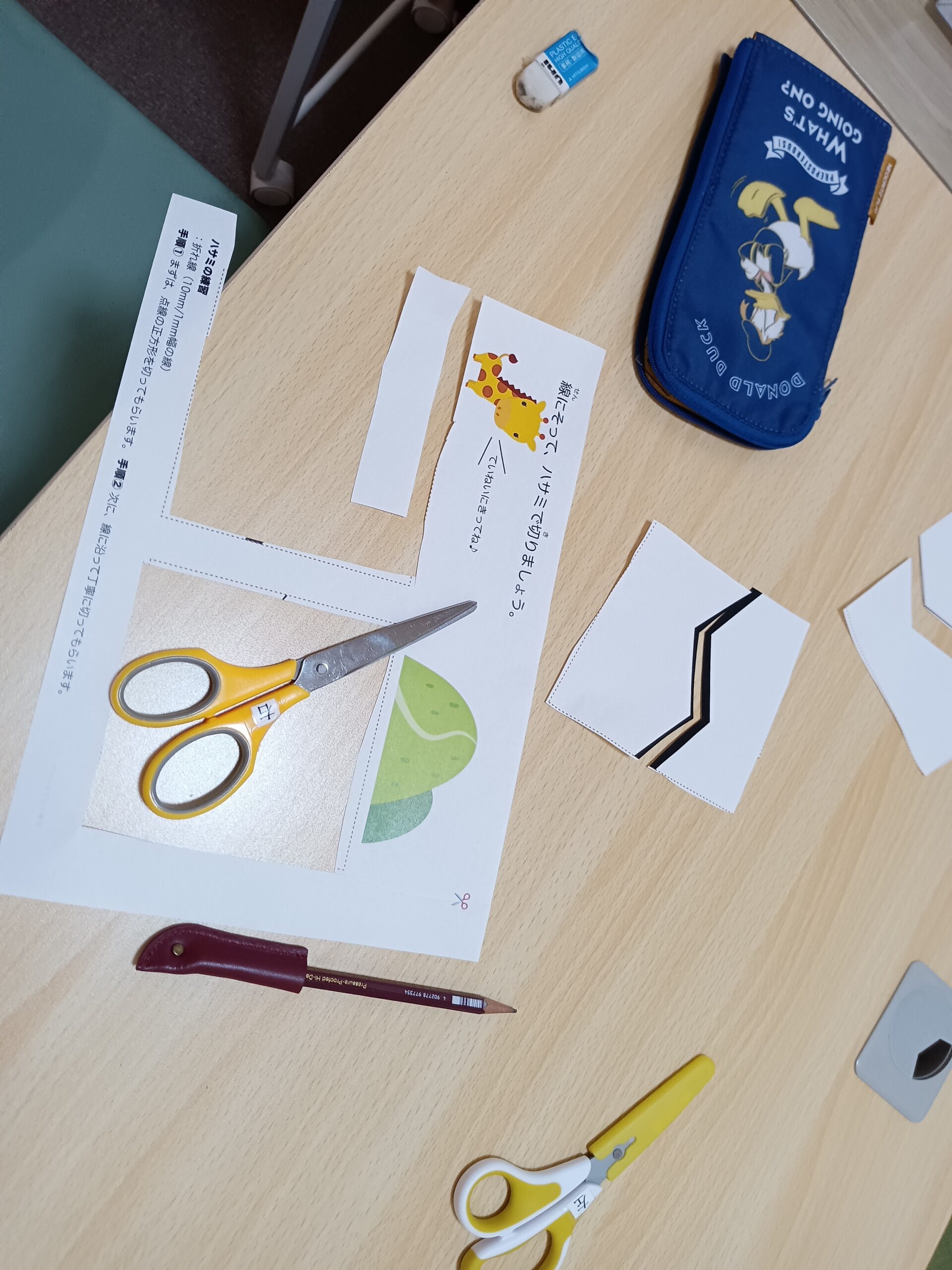 今日のホワイトボードと目の体操の「はさみ」の活動です。