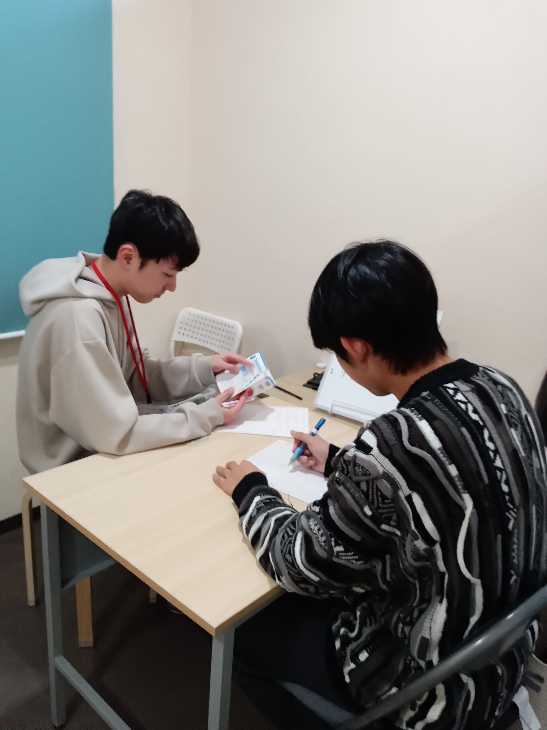 黙々と英単語の復習をしています。毎回、おさらいをしてからスタッフが書き写した問題にチャレンジしています。