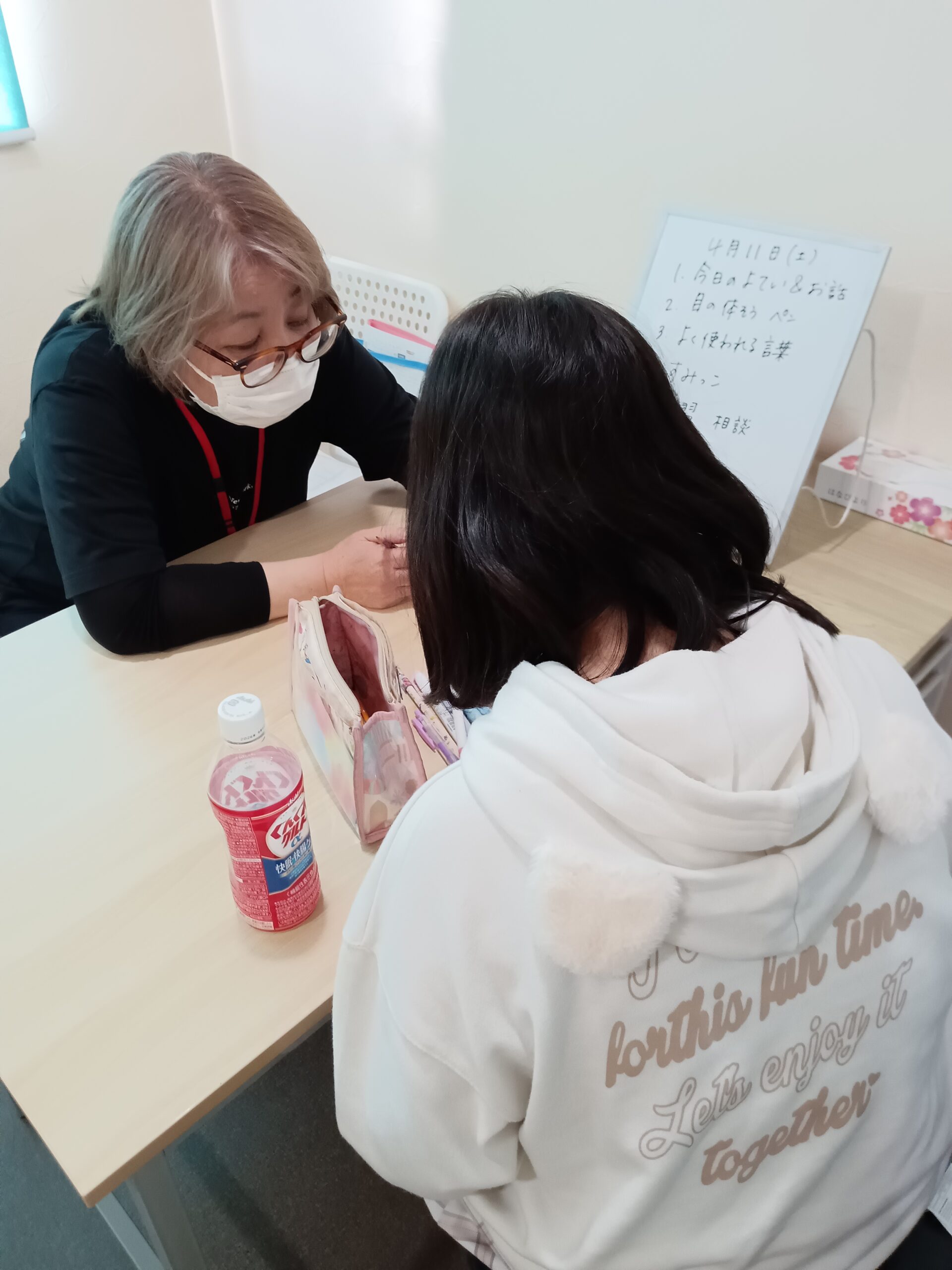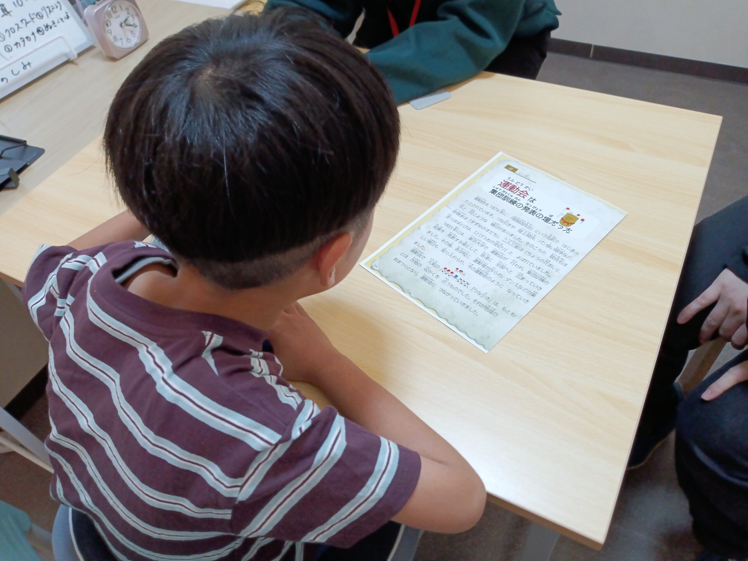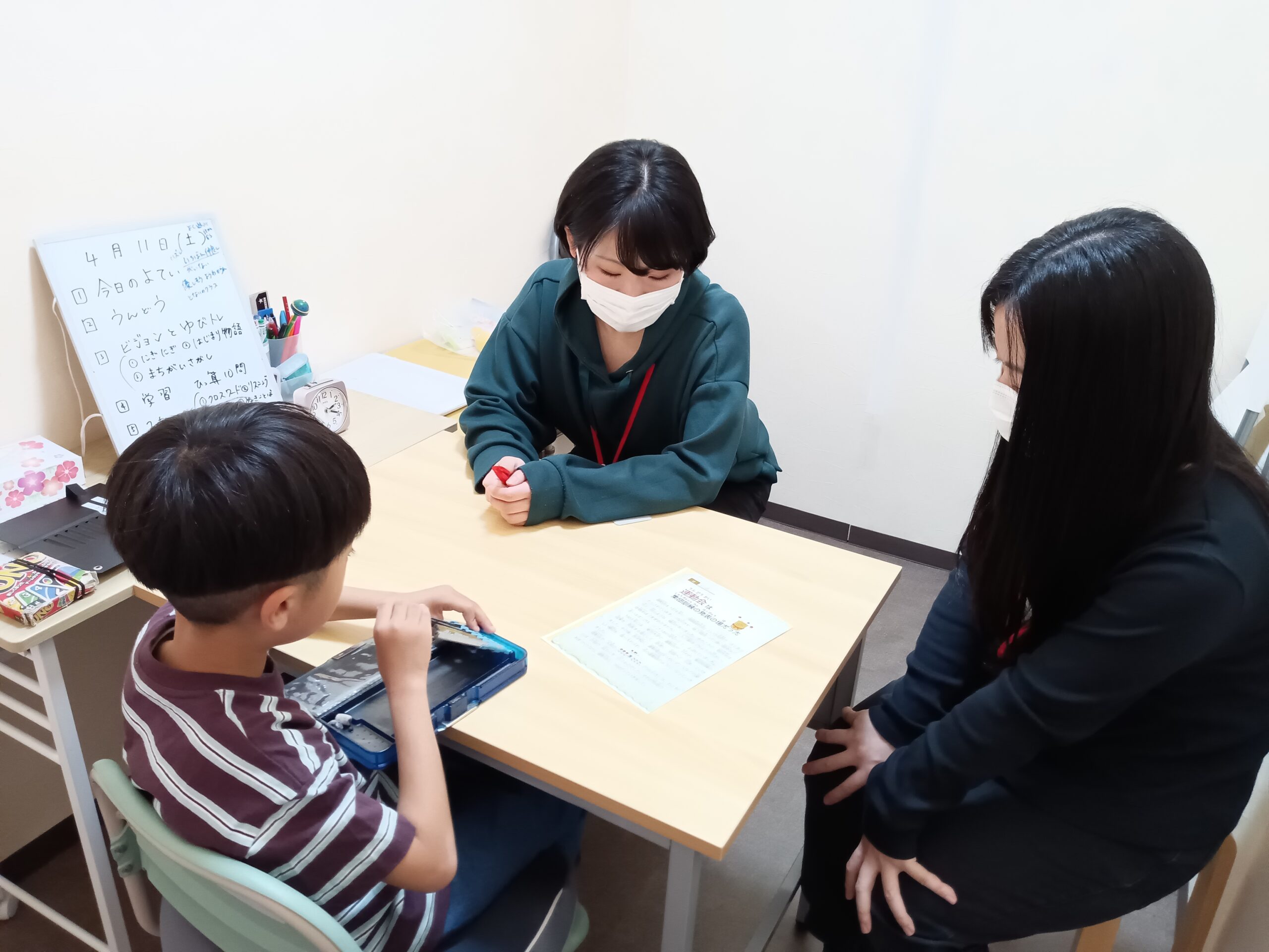 本日、アイキャッチに選んだ画像は、音読の活動です。スタッフと句点「。」で交替し、かわりばんこに読んでいきます。少しゲーム性も感じられ1つの作業をスタッフと共有していることも感じられるのではないでしょうか。