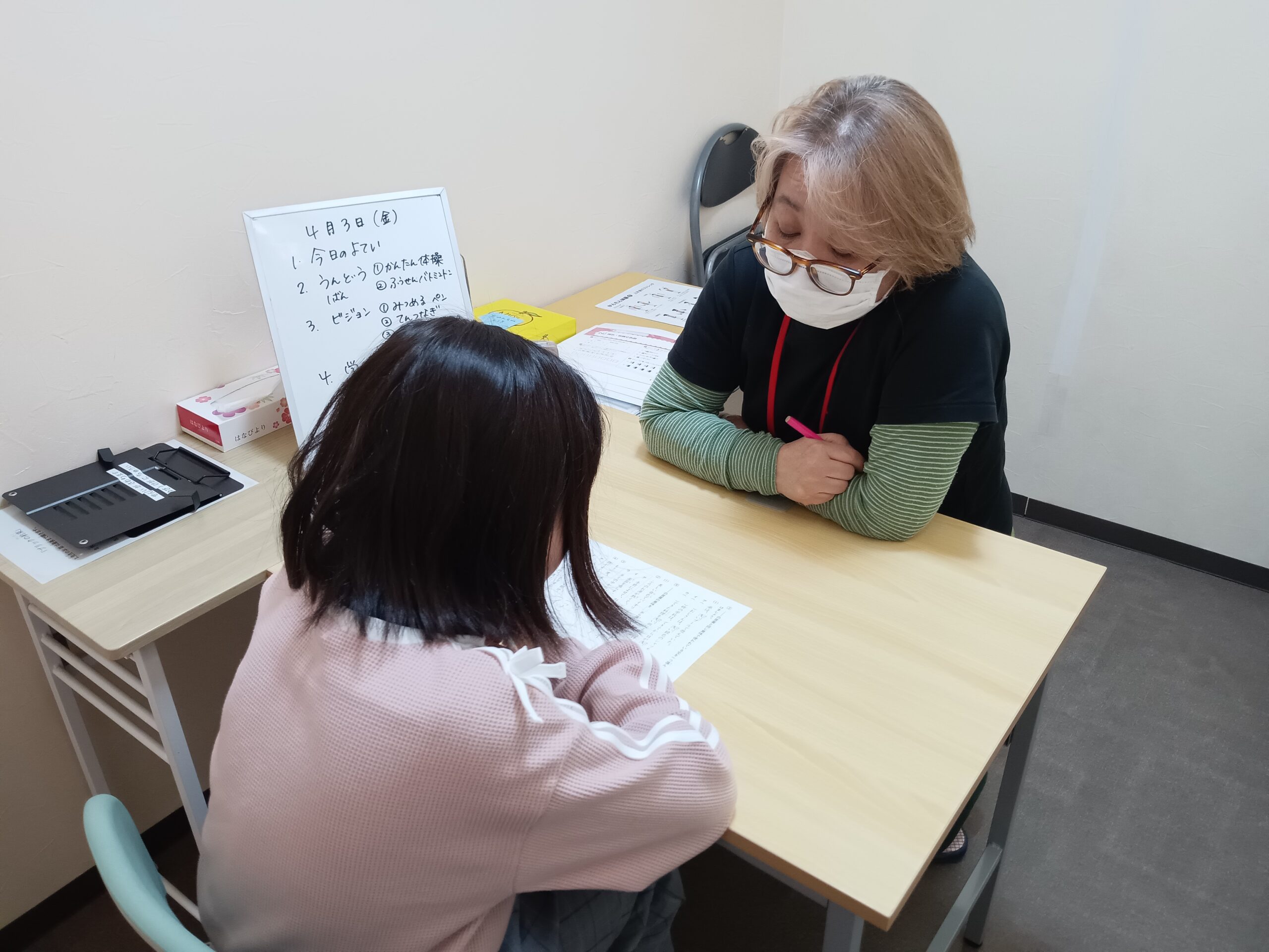 彼女は、去年の学年の復習をしています。このあと、大好きな工作が待っているけれど、しっかり学習に取り組めました(*^^)v