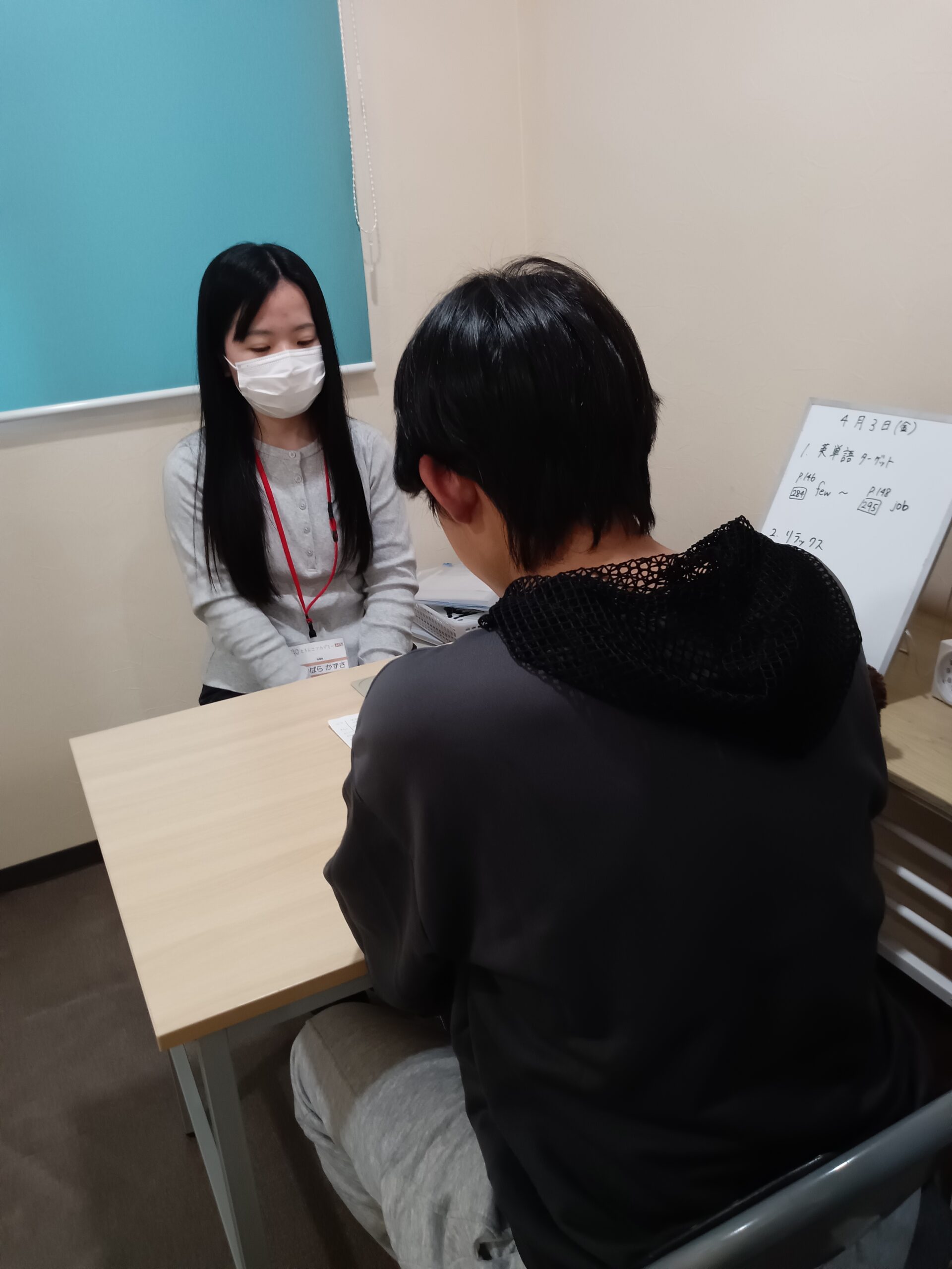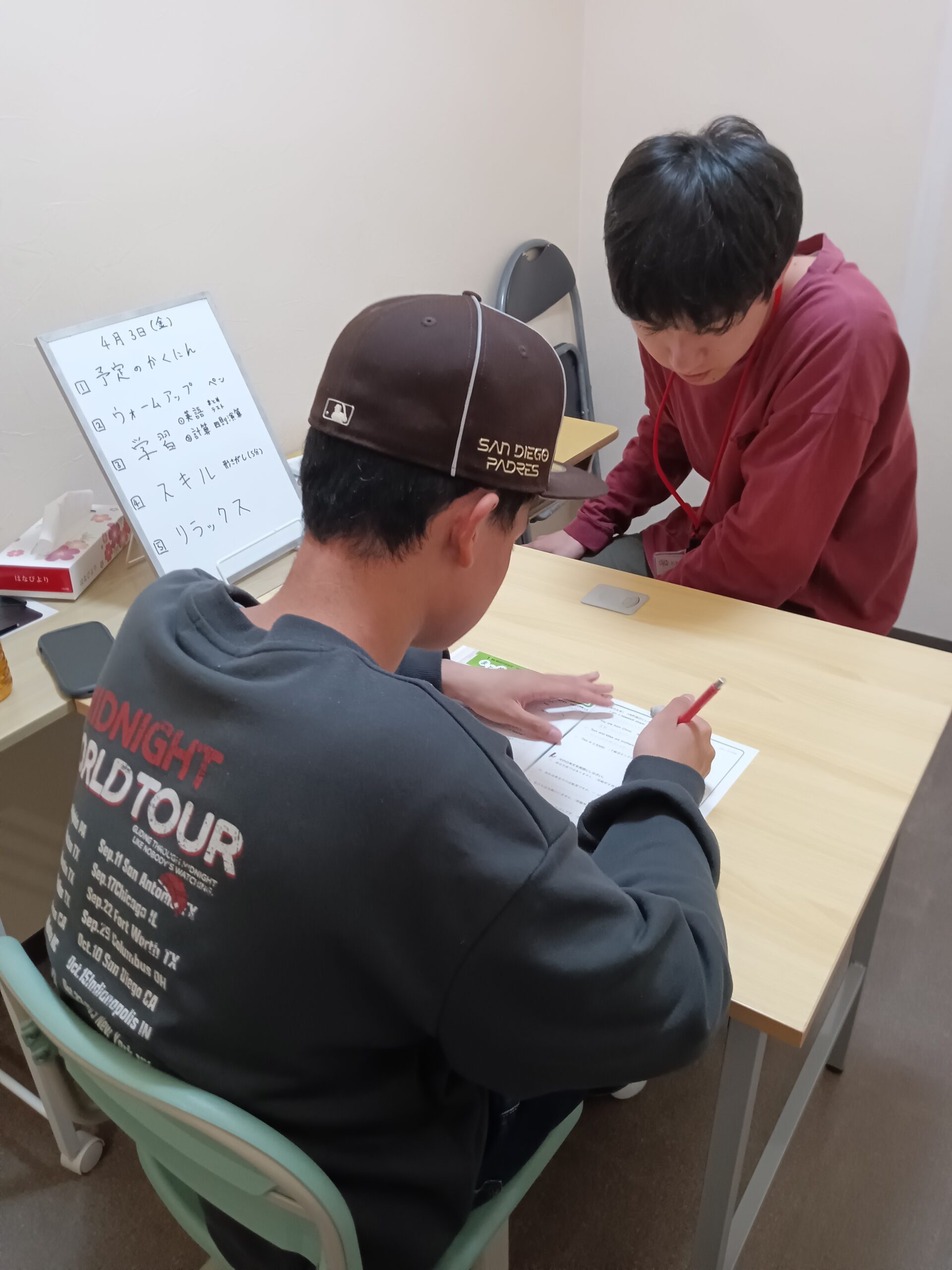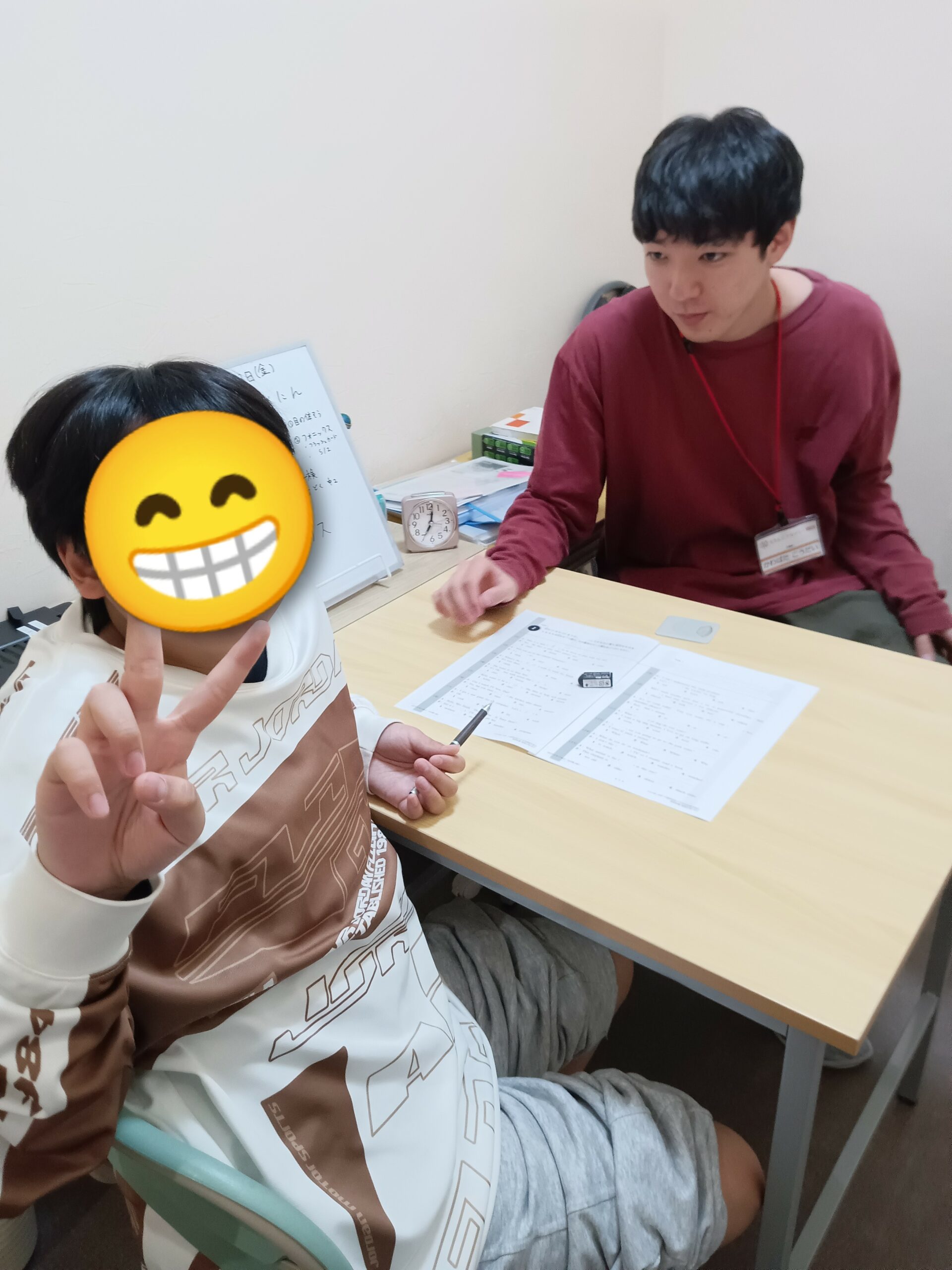 彼は英検に向けて学習中です。スタッフに向けてピースサインをしてくれました(`・ω・´)b
