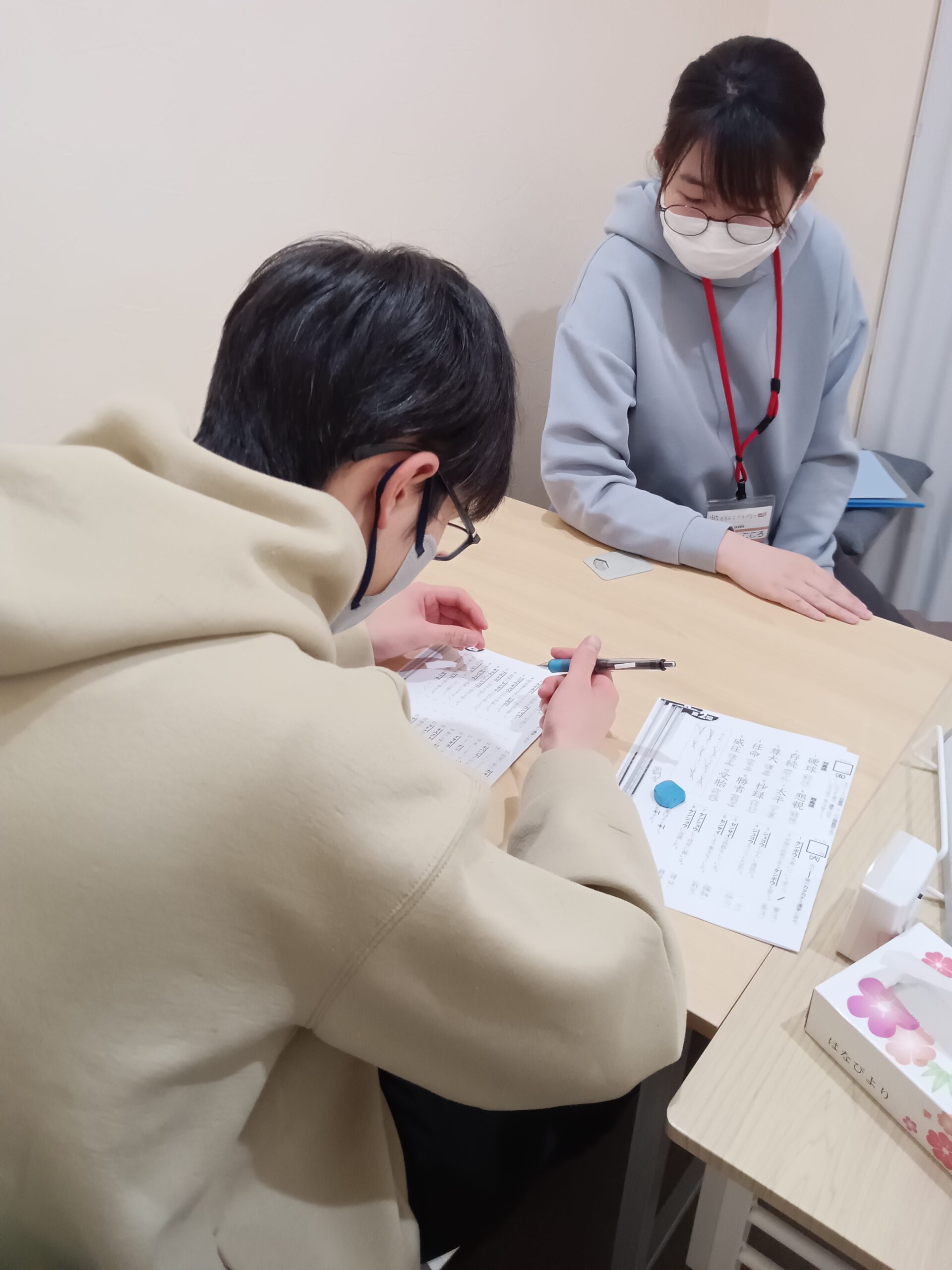 彼は、漢検2級に向けて毎回問題集を解いています。間違えた漢字を練習し、覚えれるよう頑張っています!