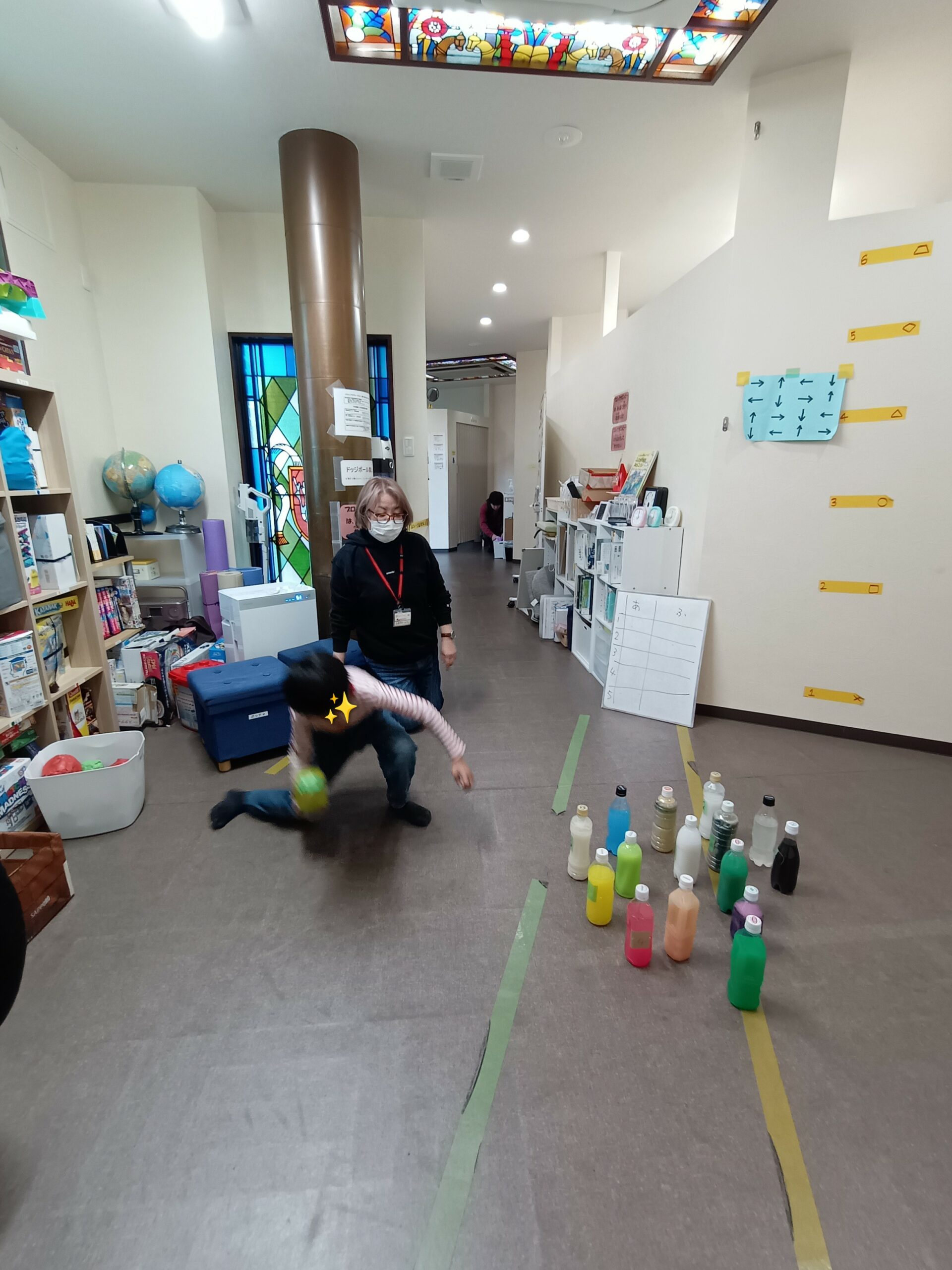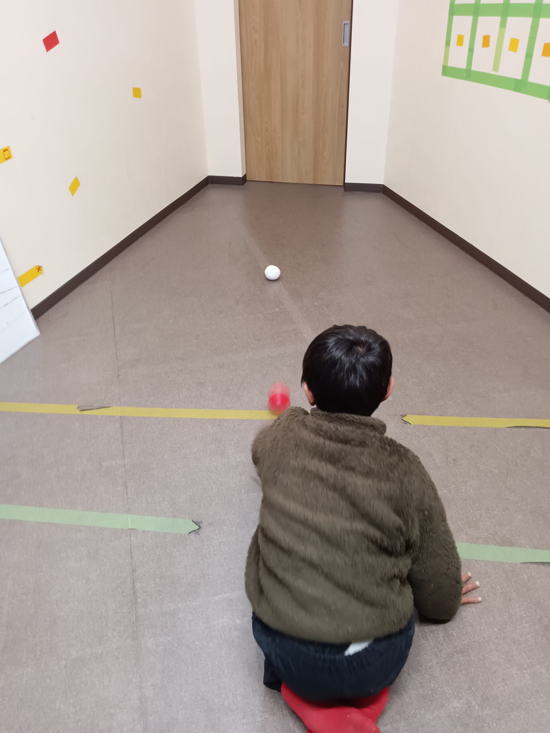 アイキャッチに選んだ画像はボッチャのルールを、ブリックルールにアレンジしたものです。自分の投げたボールが白色のボールから10cm以内だと点数になるというもの。長い定規を使ってとても丁寧に測っていました。