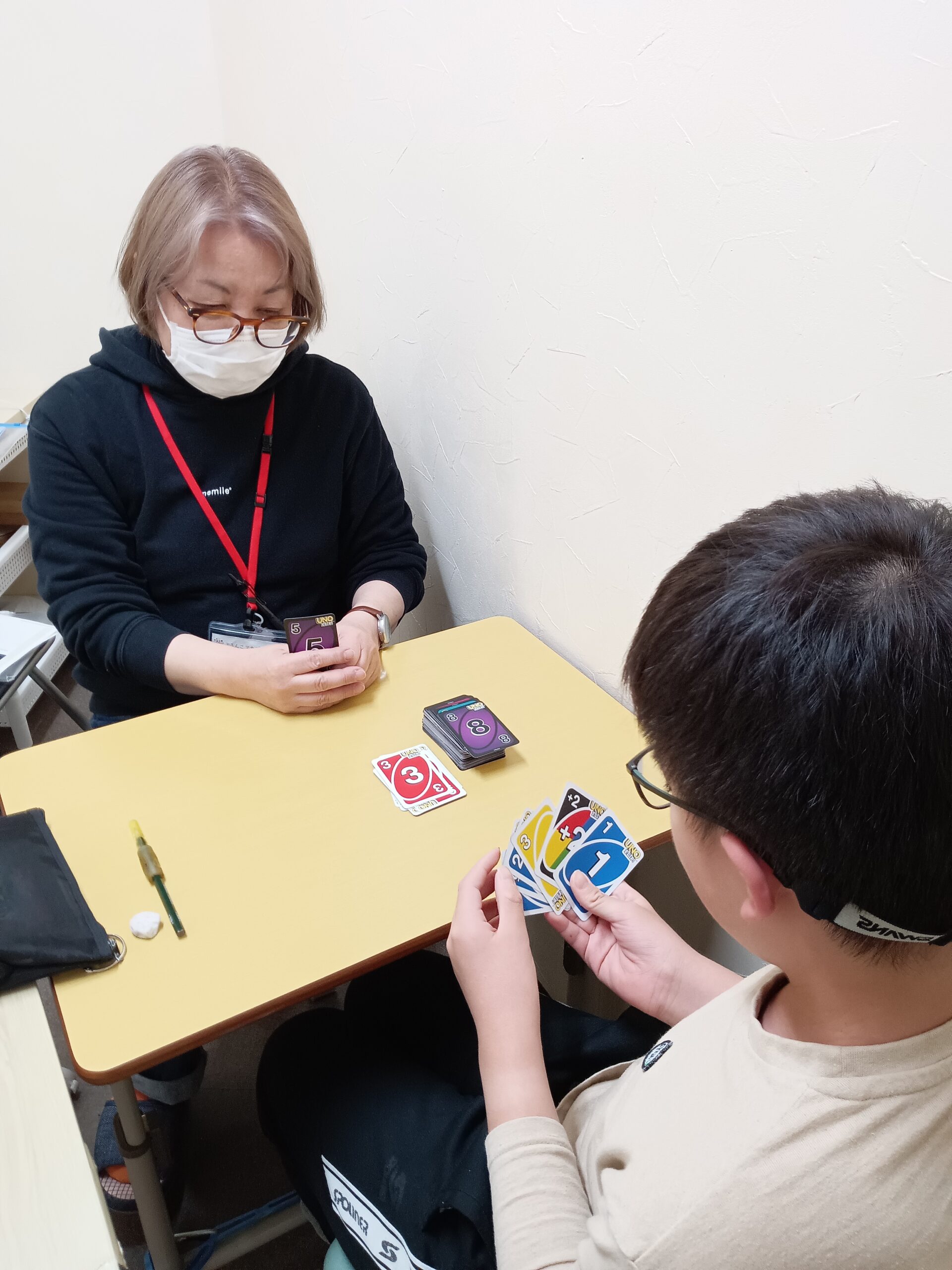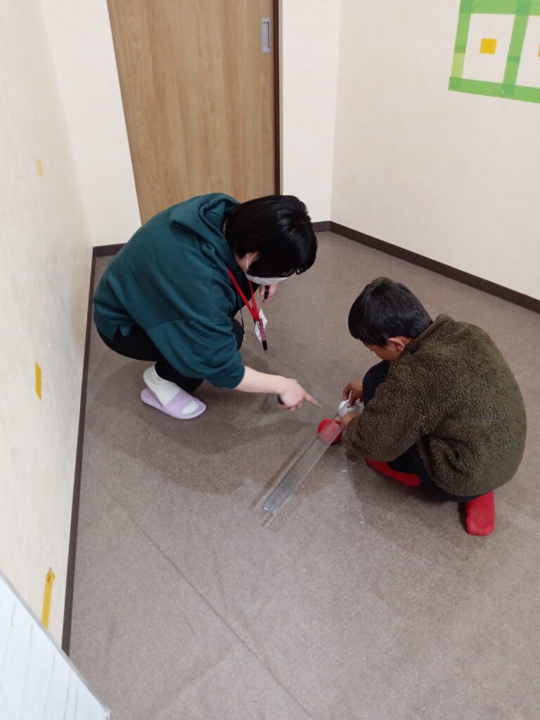 宿題などで定規を使う時よりもはるかに丁寧に測っていました。勝ちたい一心で・・。(#^.^#) 遊びの中にも学習って潜んでいるものですね~。
